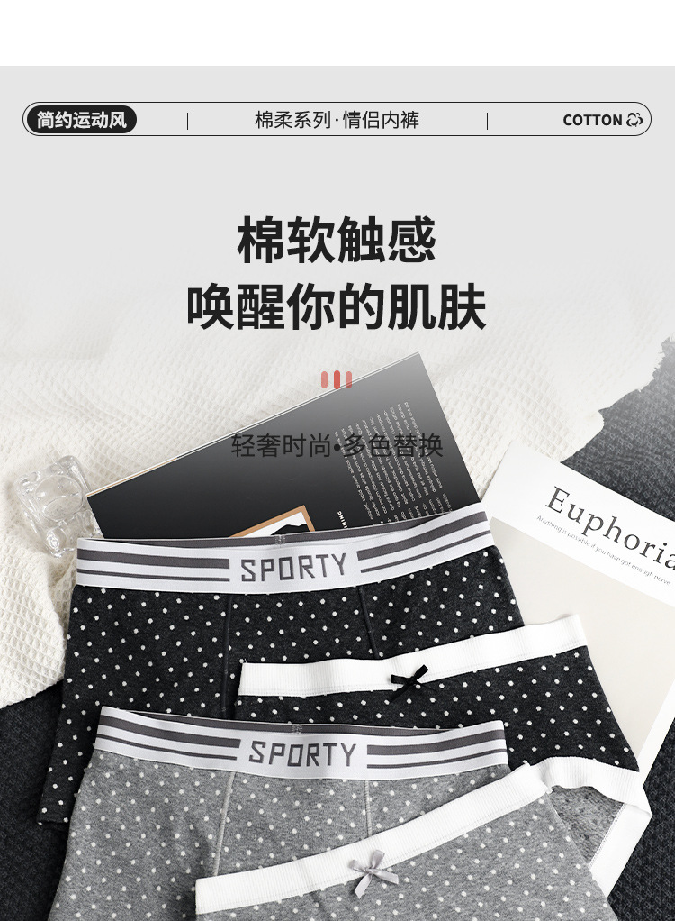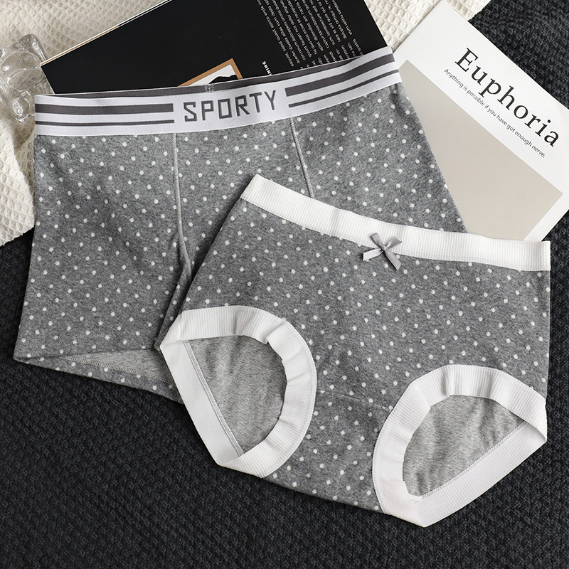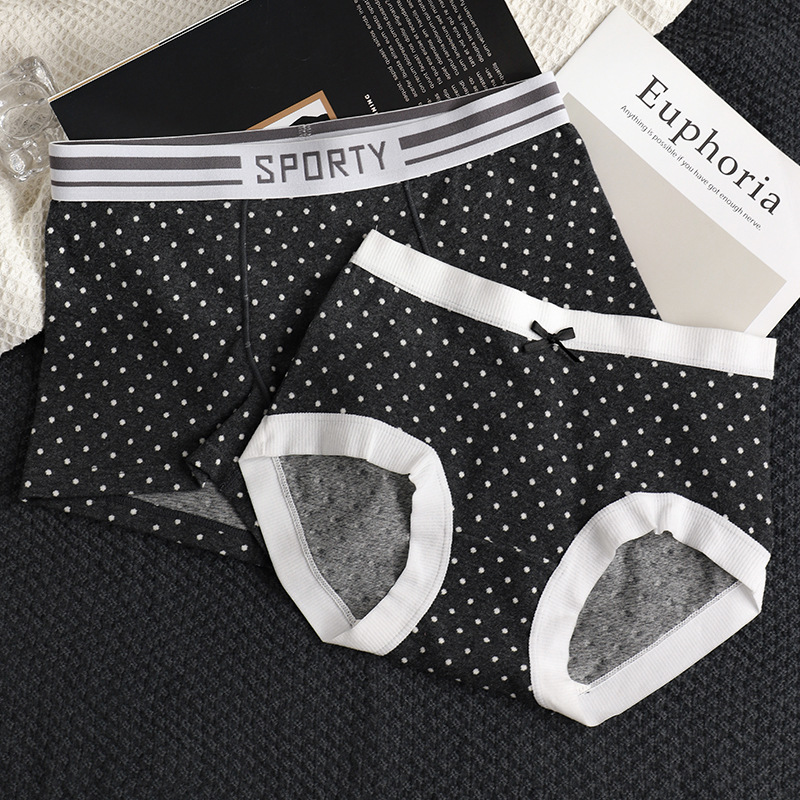 2 개의 새로운 커플 속옷 순면 편안한 청소년 중간 허리 복서 속옷 통기성 소녀 삼각형 웨이브 도트