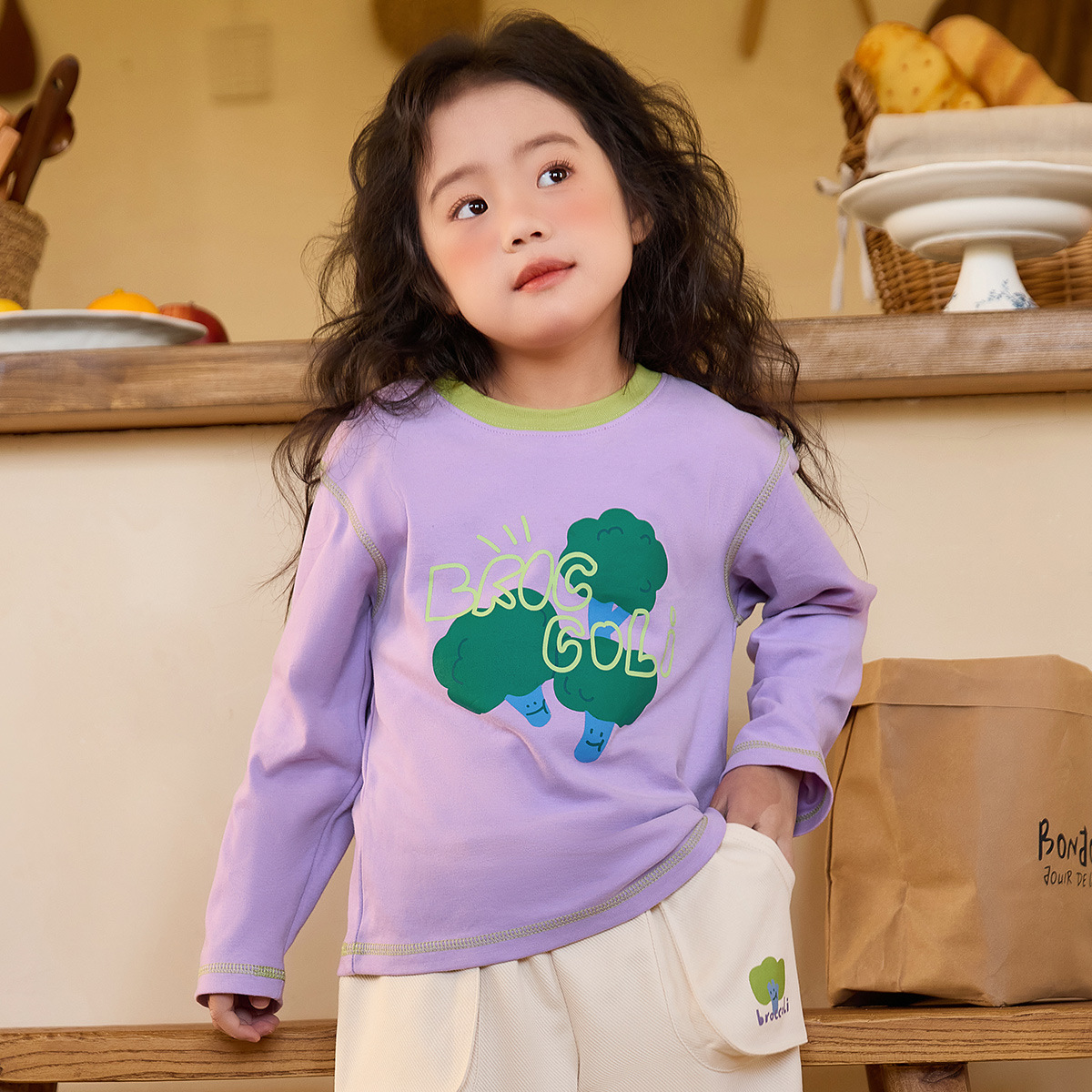 BBQB 어린이 긴팔 티셔츠 소년 소녀 봄 새로운 양면 샌딩 탑 라운드 넥 코튼 인쇄베이스 셔츠스토어 가기