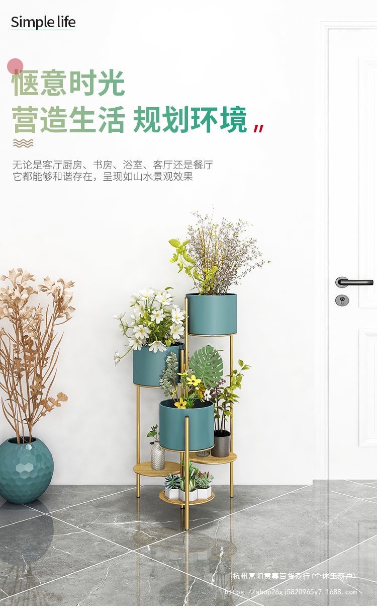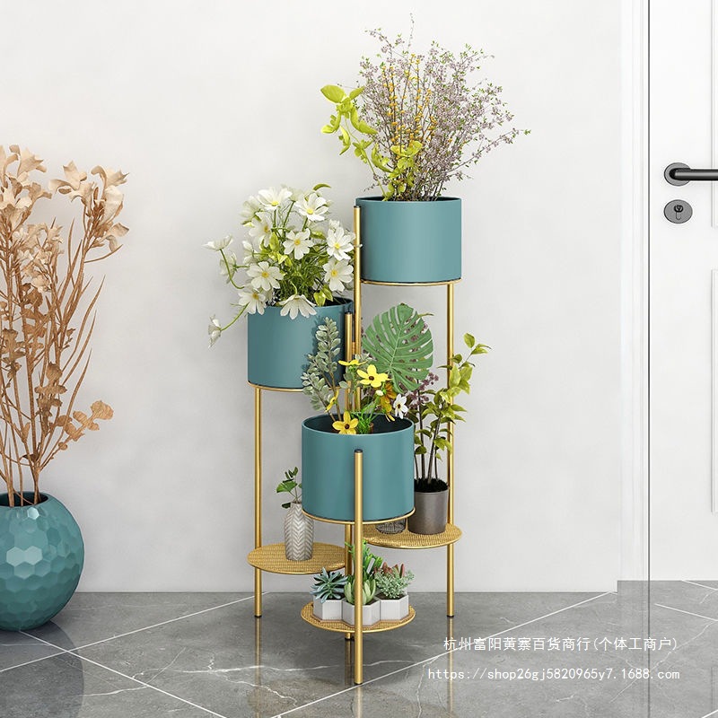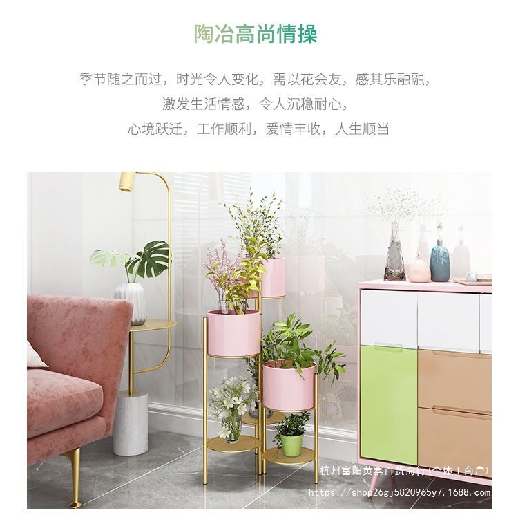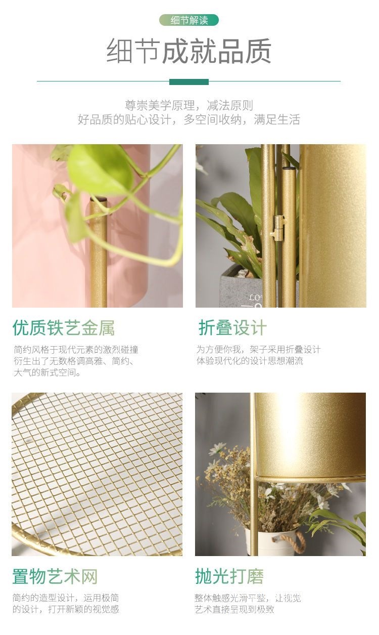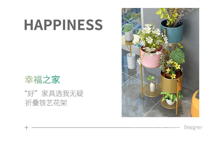 북유럽 빛 고급 꽃 선반 철 다층 바닥 스탠딩 접이식 보관 랙 그린 로즈 간단한 거실 실내 꽃 냄비 랙스토어 가기