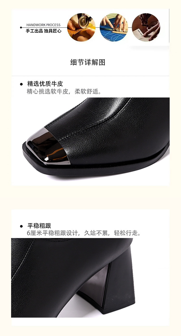 정품 가죽 프렌치 스퀘어 토 봄과 가을 패션 올 매치 레트로 하이힐 딥 입 싱글 레이어 신발 여성 영국 스타일 청키 힐 다크 브라운 여성 신발스토어 가기