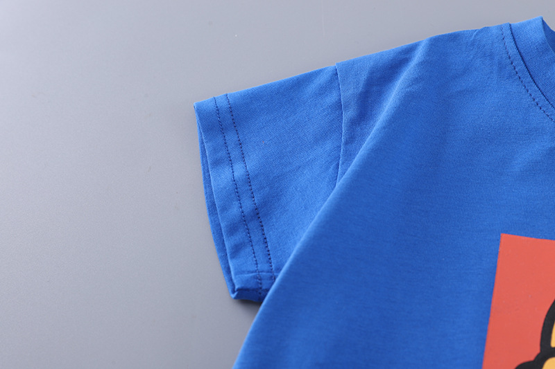 2025 새로운 여름 아동복 소년 짧은 소매 만화 강아지 데님 반바지 두 조각 세트 머리카락스토어 가기