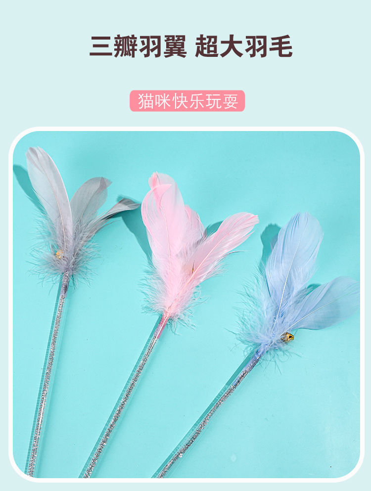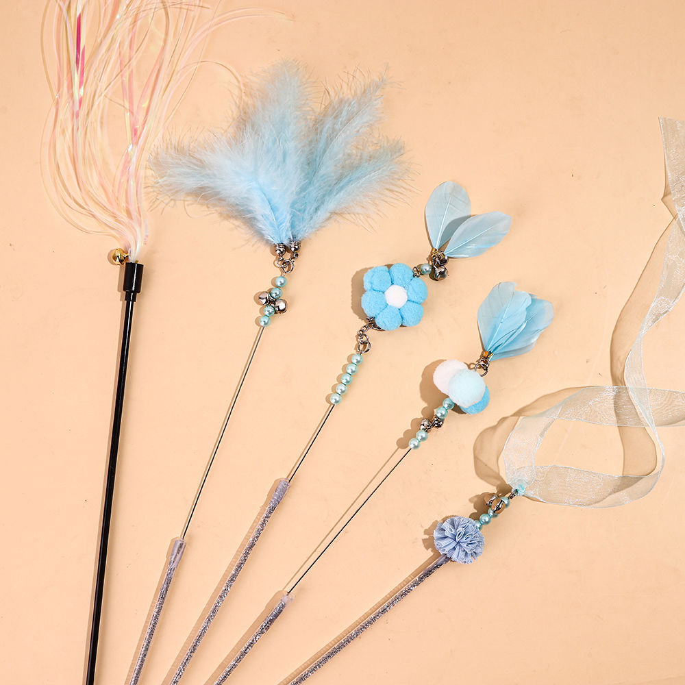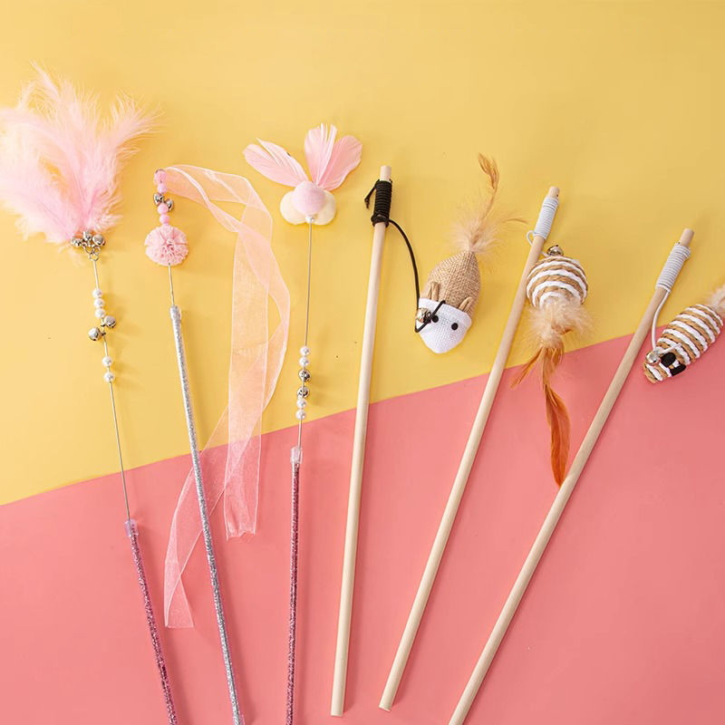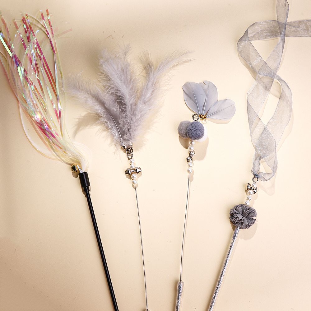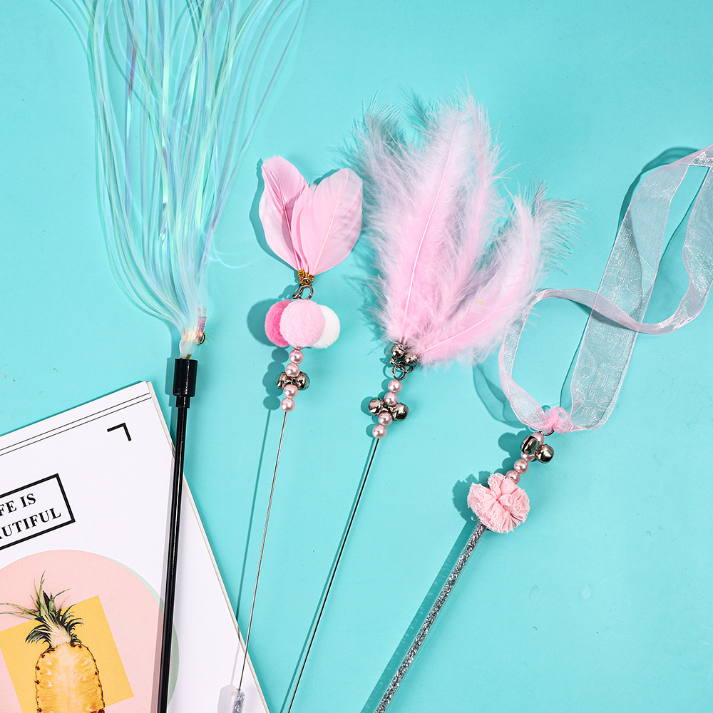 국경 도매 고양이 스틱 긴 막대 물린 방지 고양이 장난감 셀프 하이 벨 깃털 요정 나무 스틱 지루함과 내구성있는 고양이스토어 가기