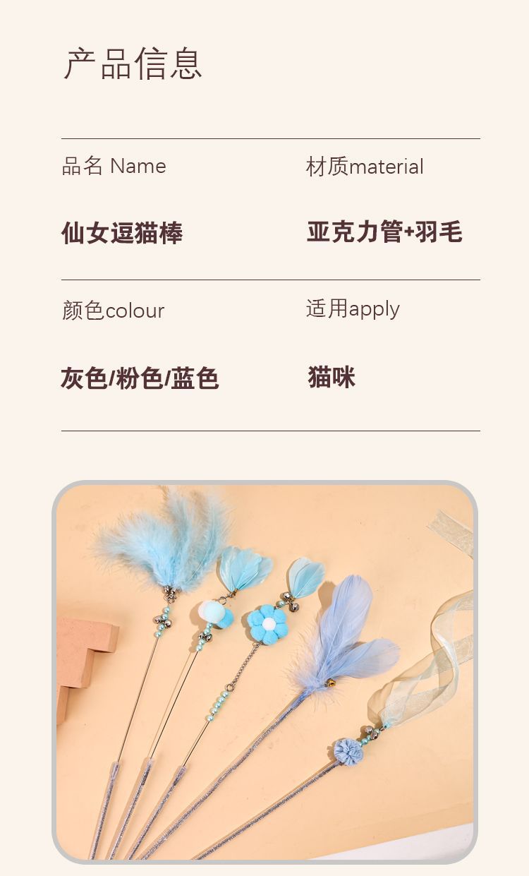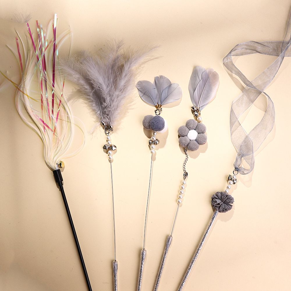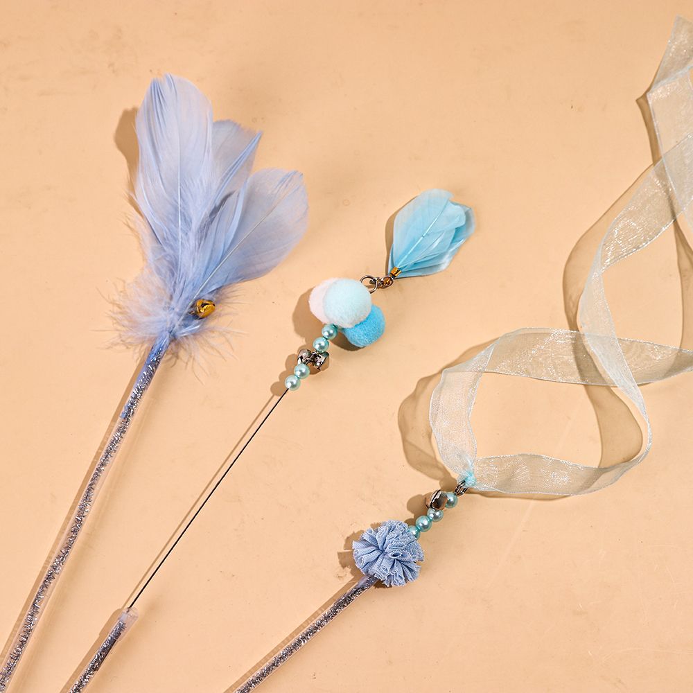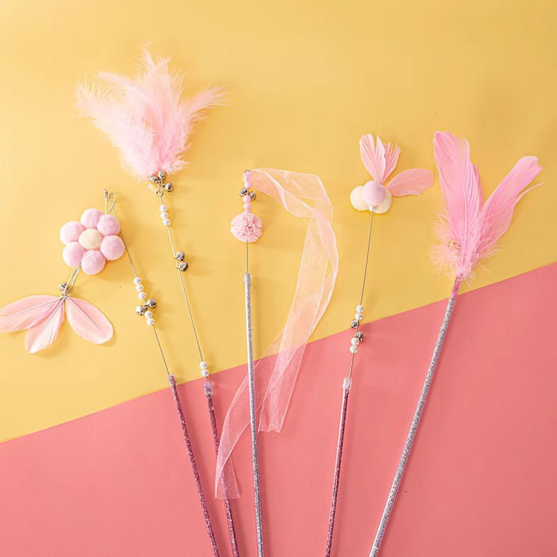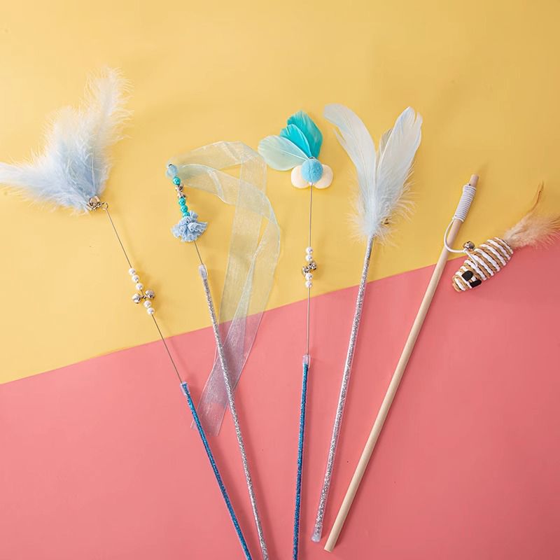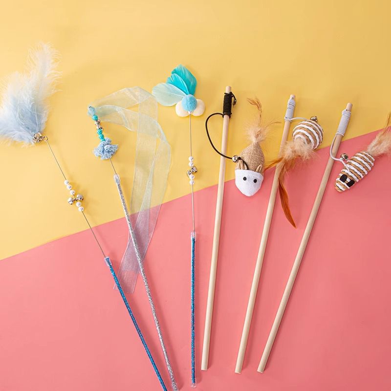 국경 도매 고양이 스틱 긴 막대 물린 방지 고양이 장난감 셀프 하이 벨 깃털 요정 나무 스틱 지루함과 내구성있는 고양이스토어 가기