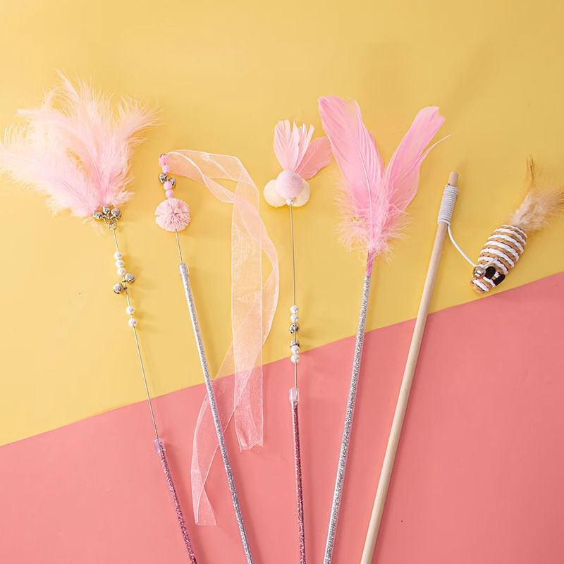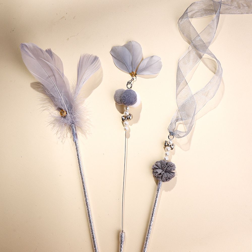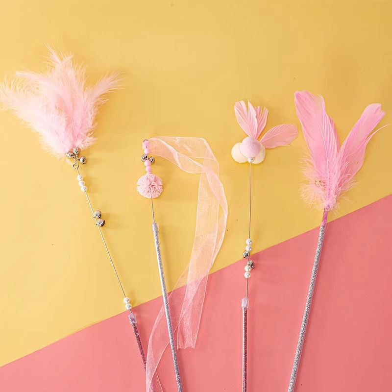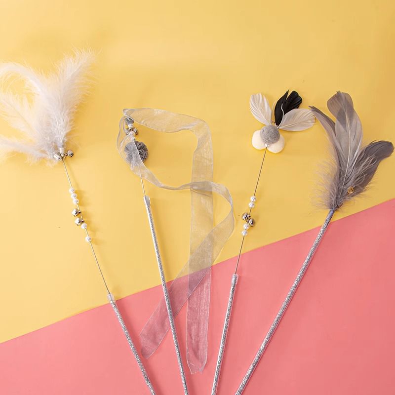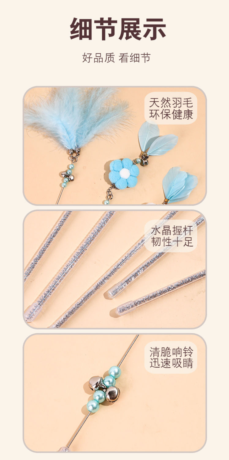 국경 도매 고양이 스틱 긴 막대 물린 방지 고양이 장난감 셀프 하이 벨 깃털 요정 나무 스틱 지루함과 내구성있는 고양이스토어 가기