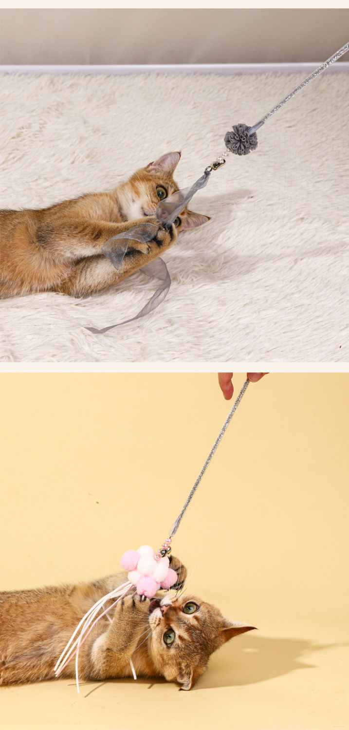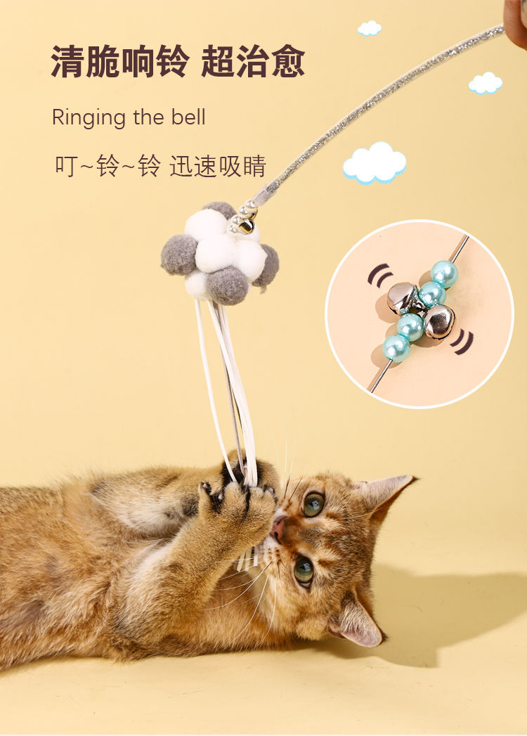 국경 도매 고양이 스틱 긴 막대 물린 방지 고양이 장난감 셀프 하이 벨 깃털 요정 나무 스틱 지루함과 내구성있는 고양이