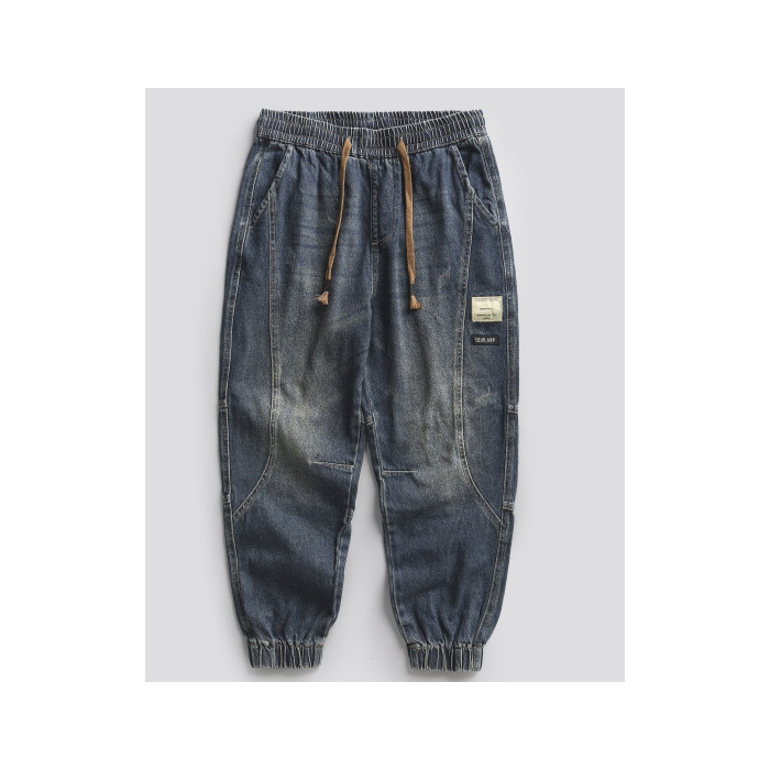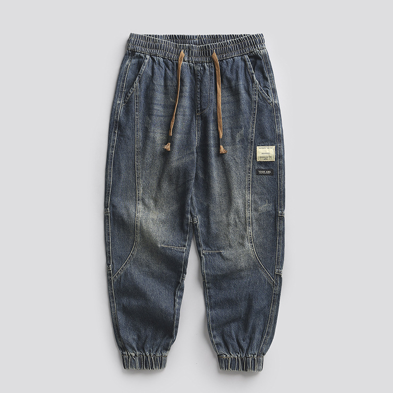 아메리칸 스타일 무거운 봄 청바지 남자 2025 새로운 느슨한 다리 오버볼 남자 복고풍 세탁 남자 바지스토어 가기