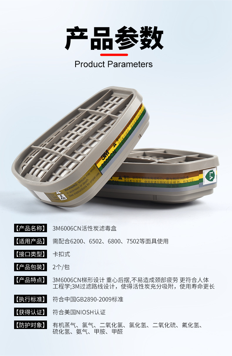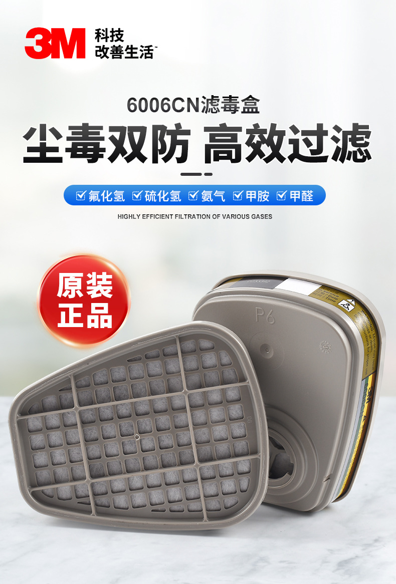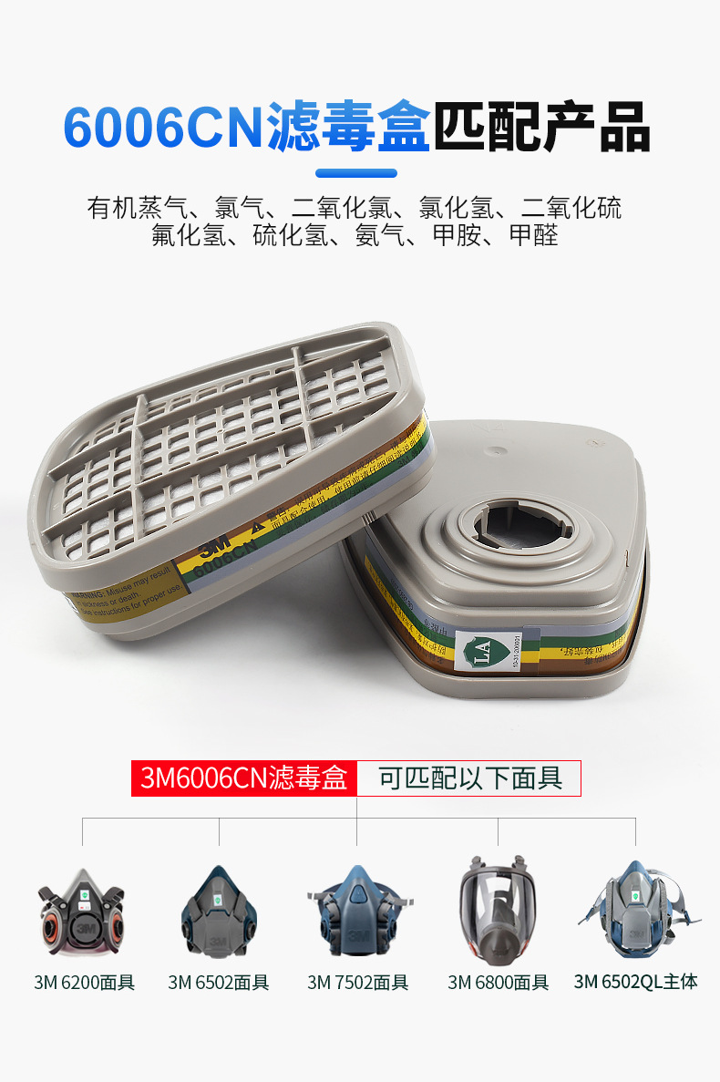 3M6006CN 필터 박스 다중 가스 보호 화학 실험 스프레이 페인트 특수 가스 마스크 액세서리 2 개/갑스토어 가기
