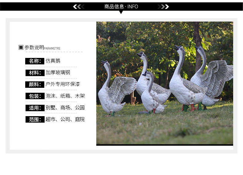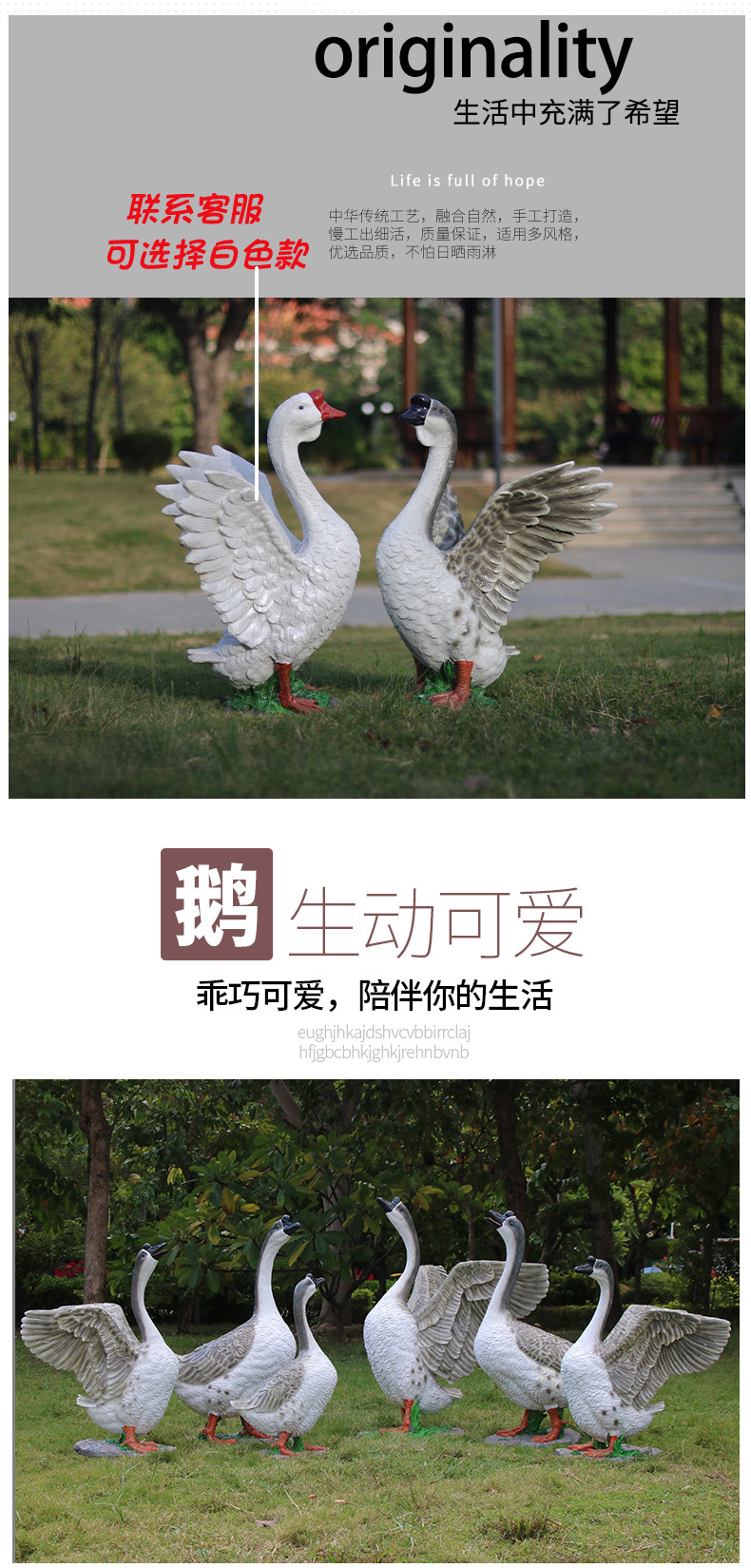 수영장 시뮬레이션 거위 유리 섬유 강화 플라스틱 조각 유치원 안뜰 거위 정원 풍경 농가 장식 큰 장식품스토어 가기