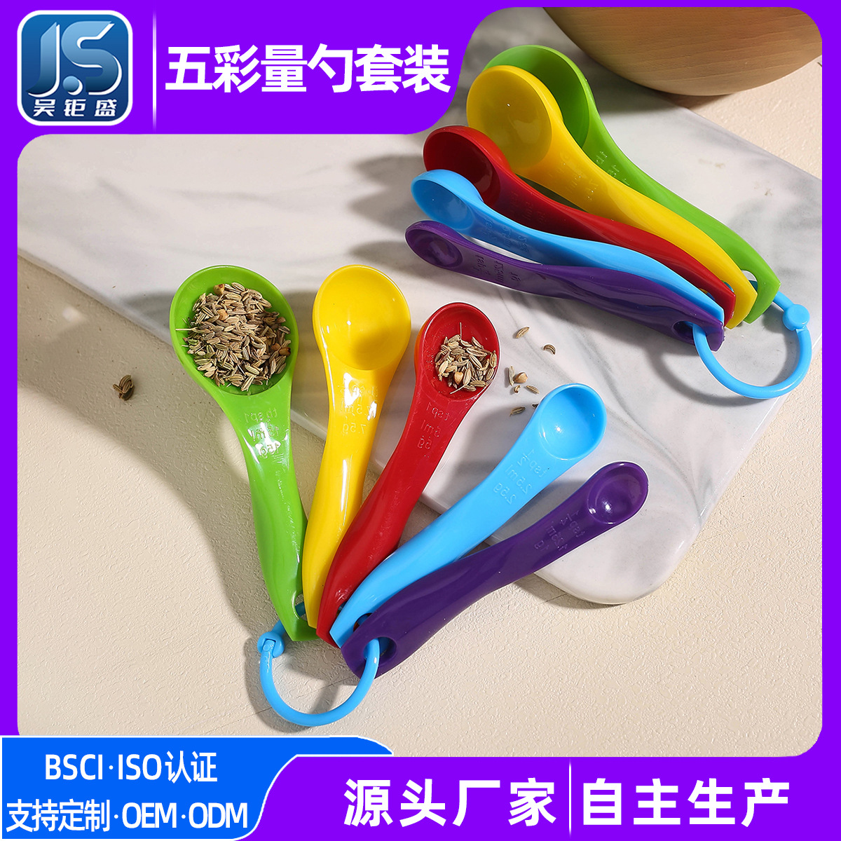 스케일 조미료 숟가락 5 조각 세트 주방 요리 재료 숟가락 무지개 숟가락 베이킹 도구가있는 다기능 플라스틱