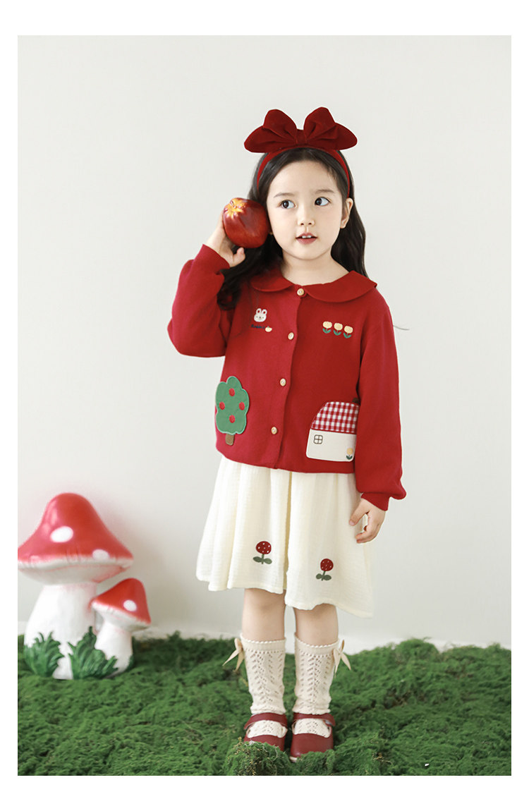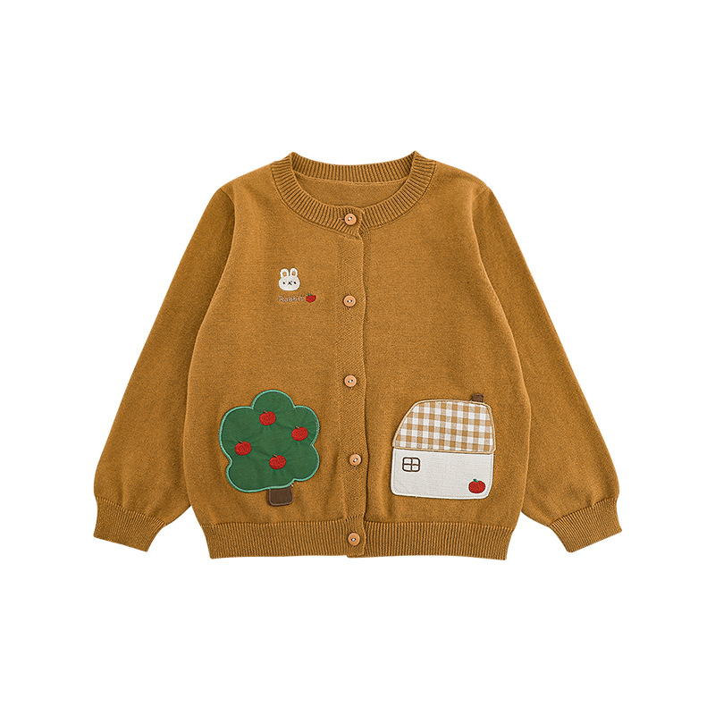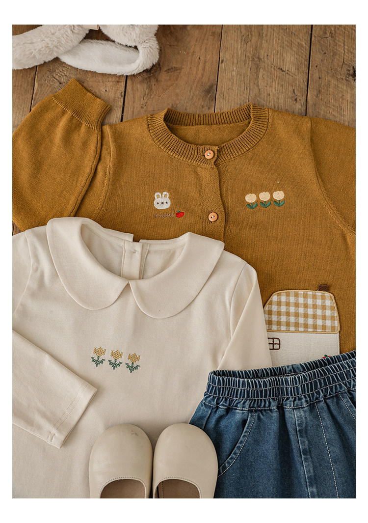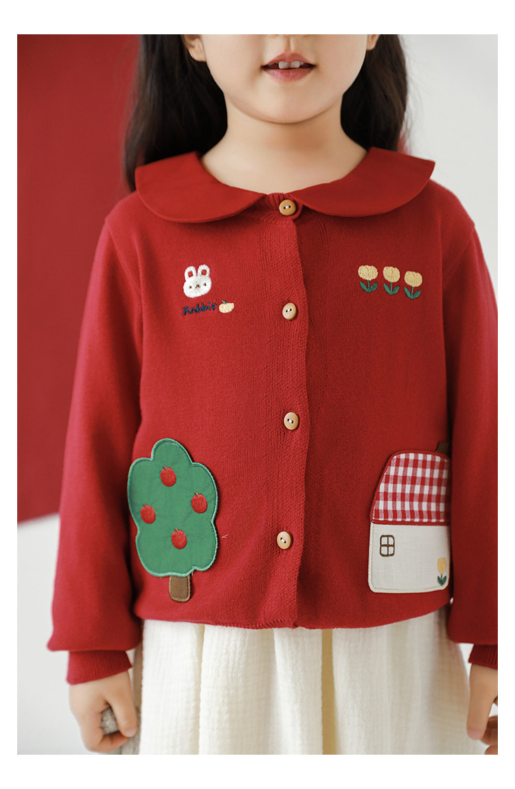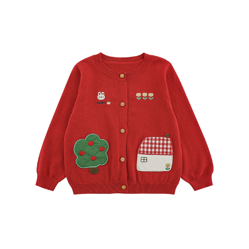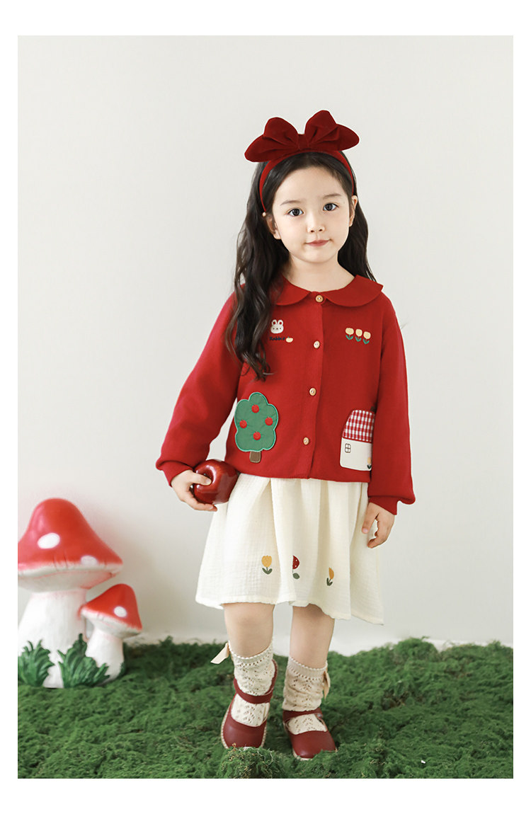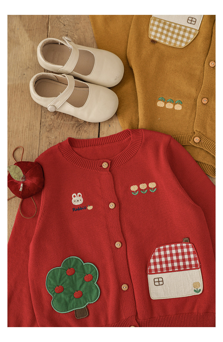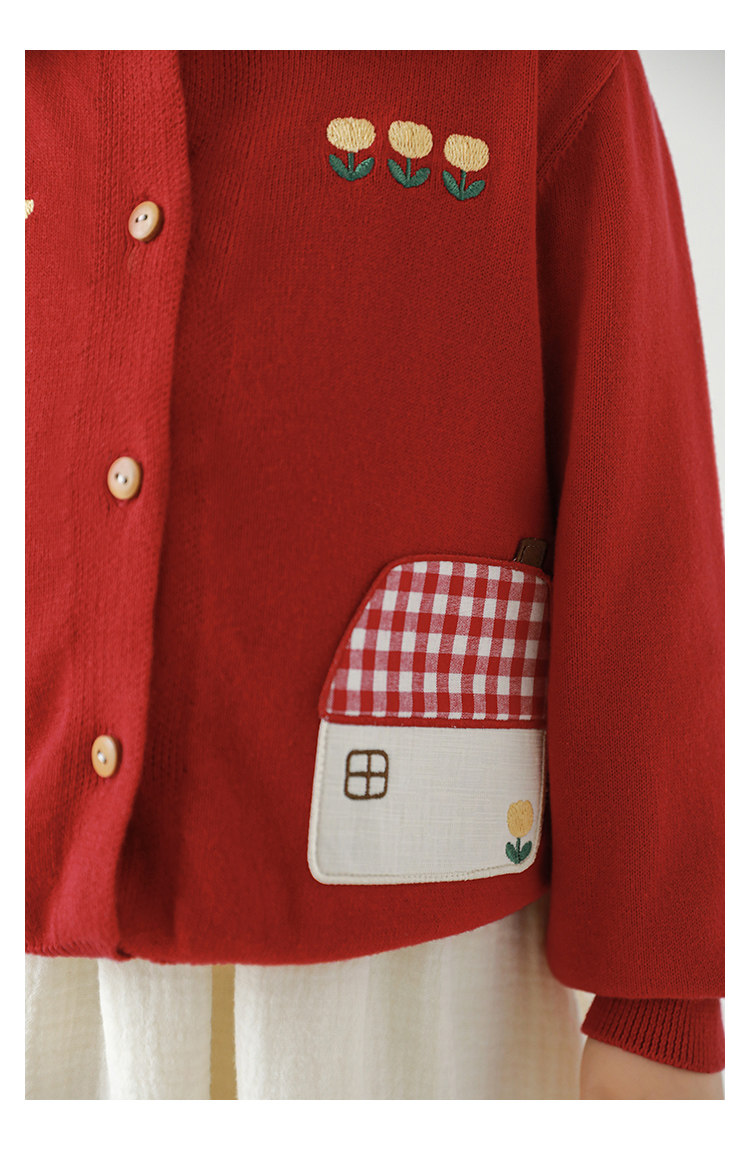 Wulibu 소녀 만화 하우스 스웨터 가디건 가을 에너지 넘치는 골지 트리밍 튤립 자수 탑 트렌디스토어 가기