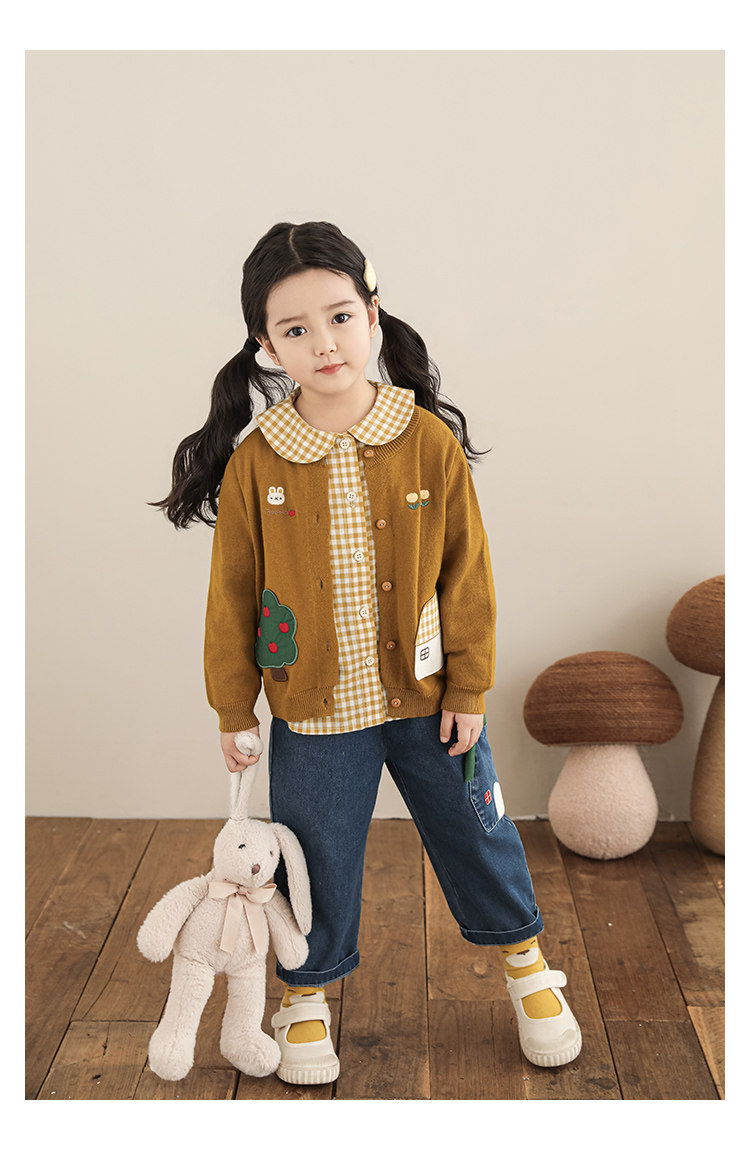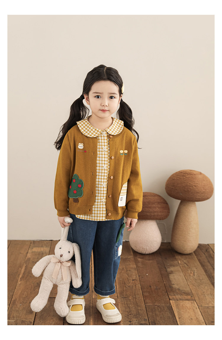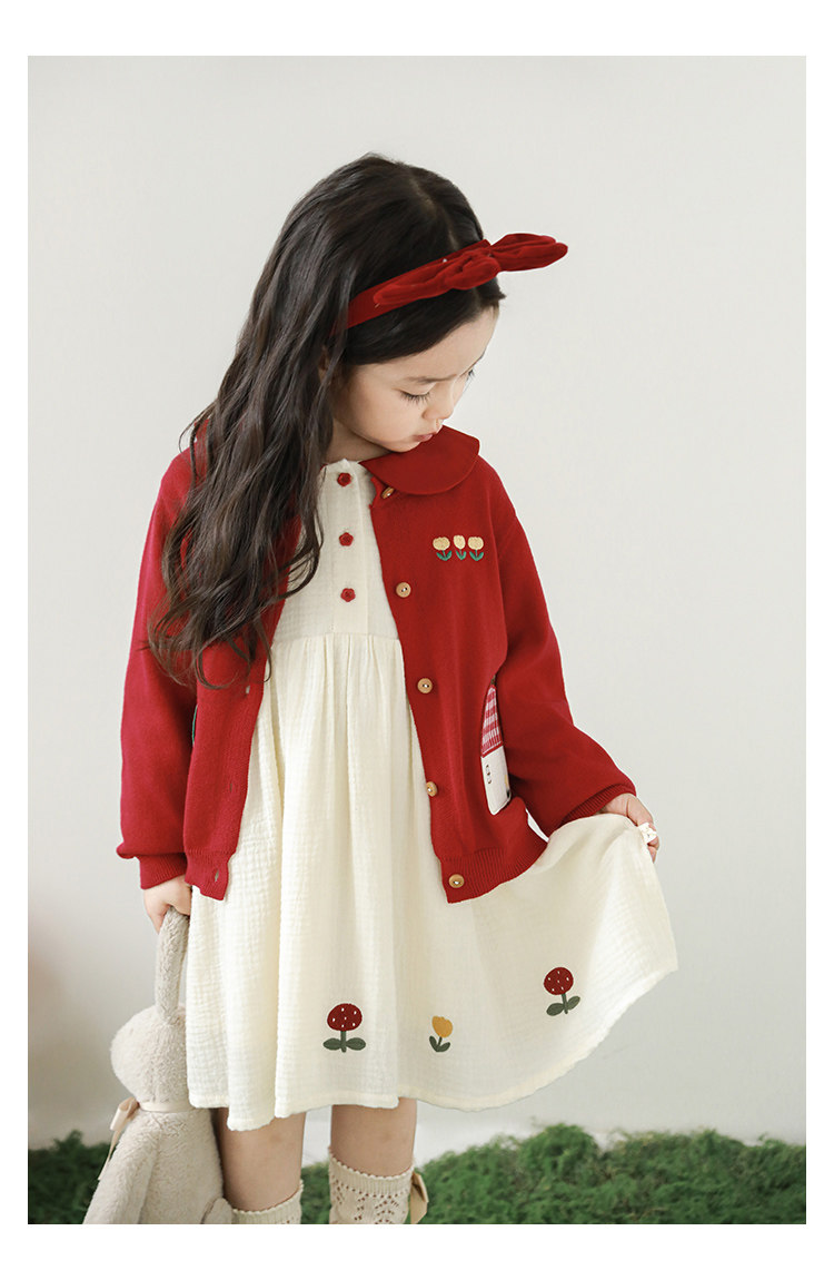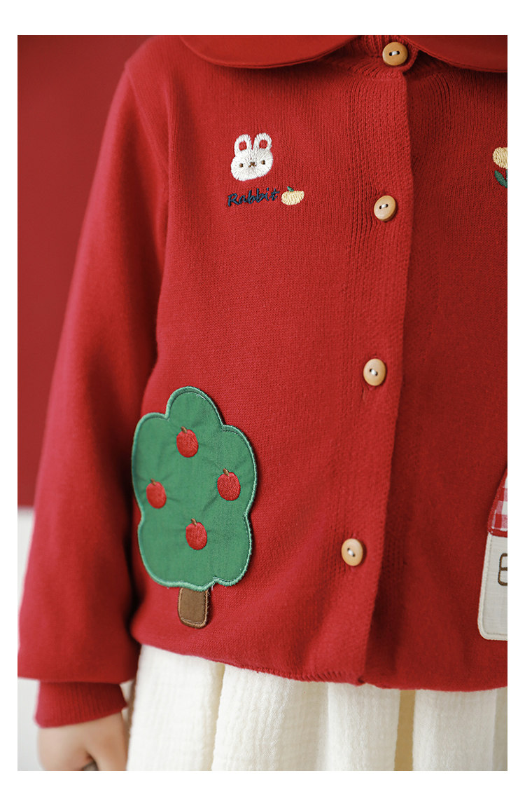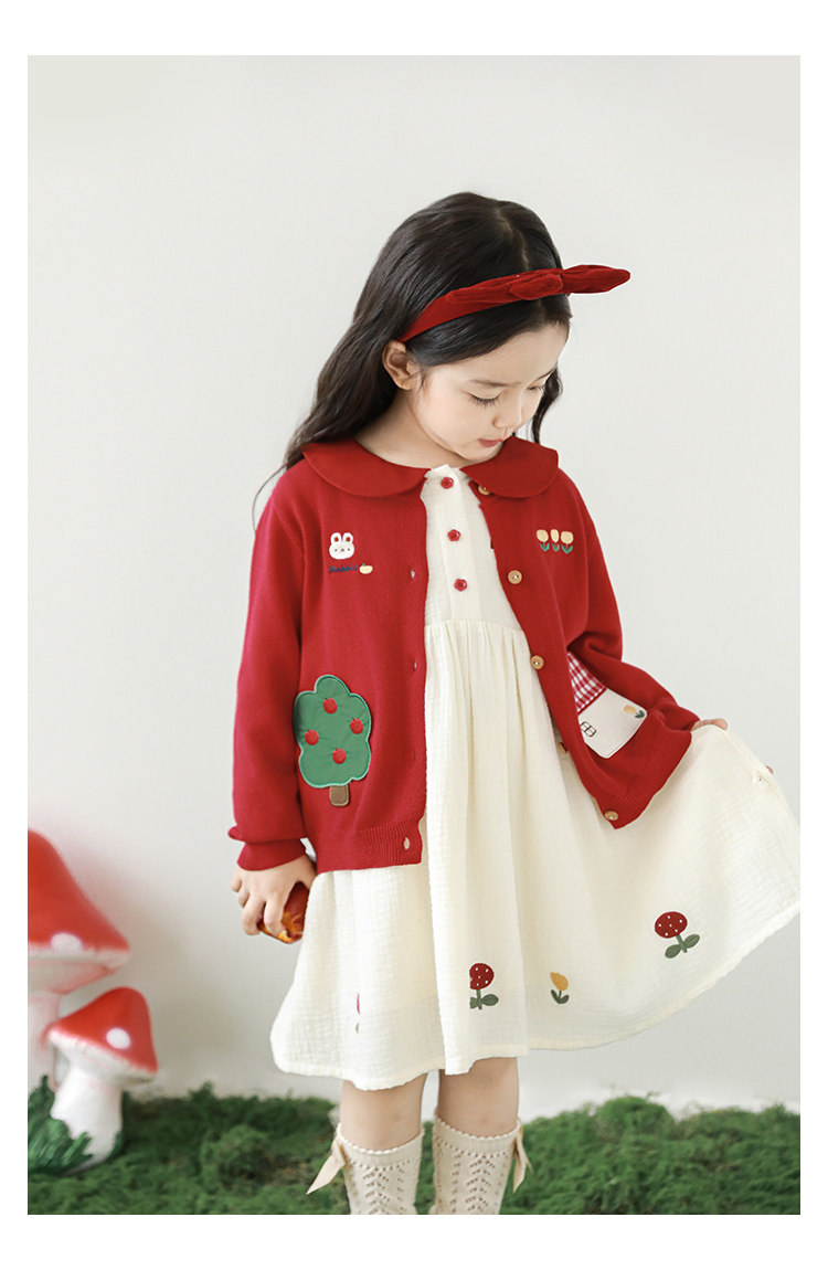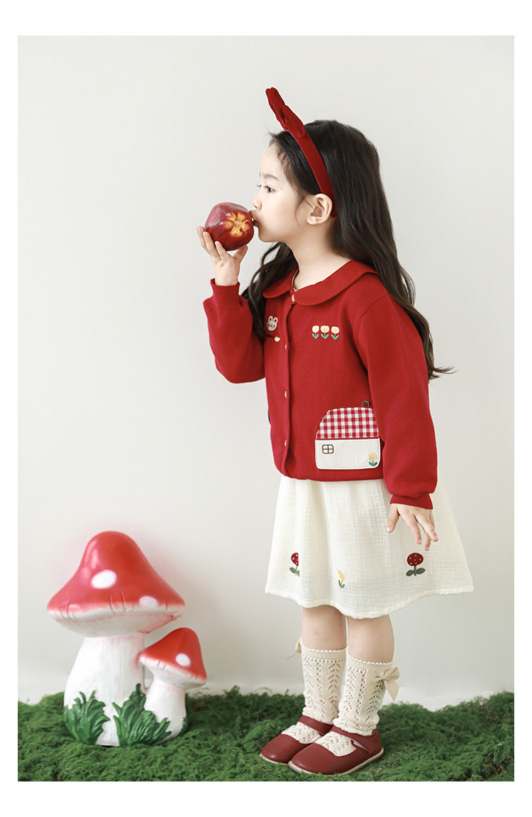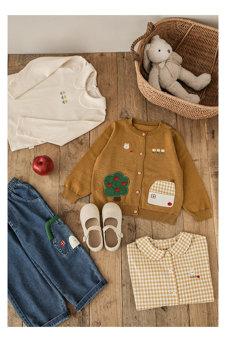 Wulibu 소녀 만화 하우스 스웨터 가디건 가을 에너지 넘치는 골지 트리밍 튤립 자수 탑 트렌디스토어 가기