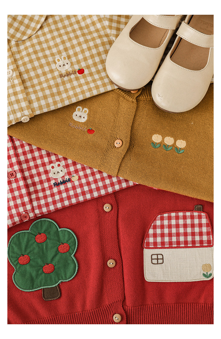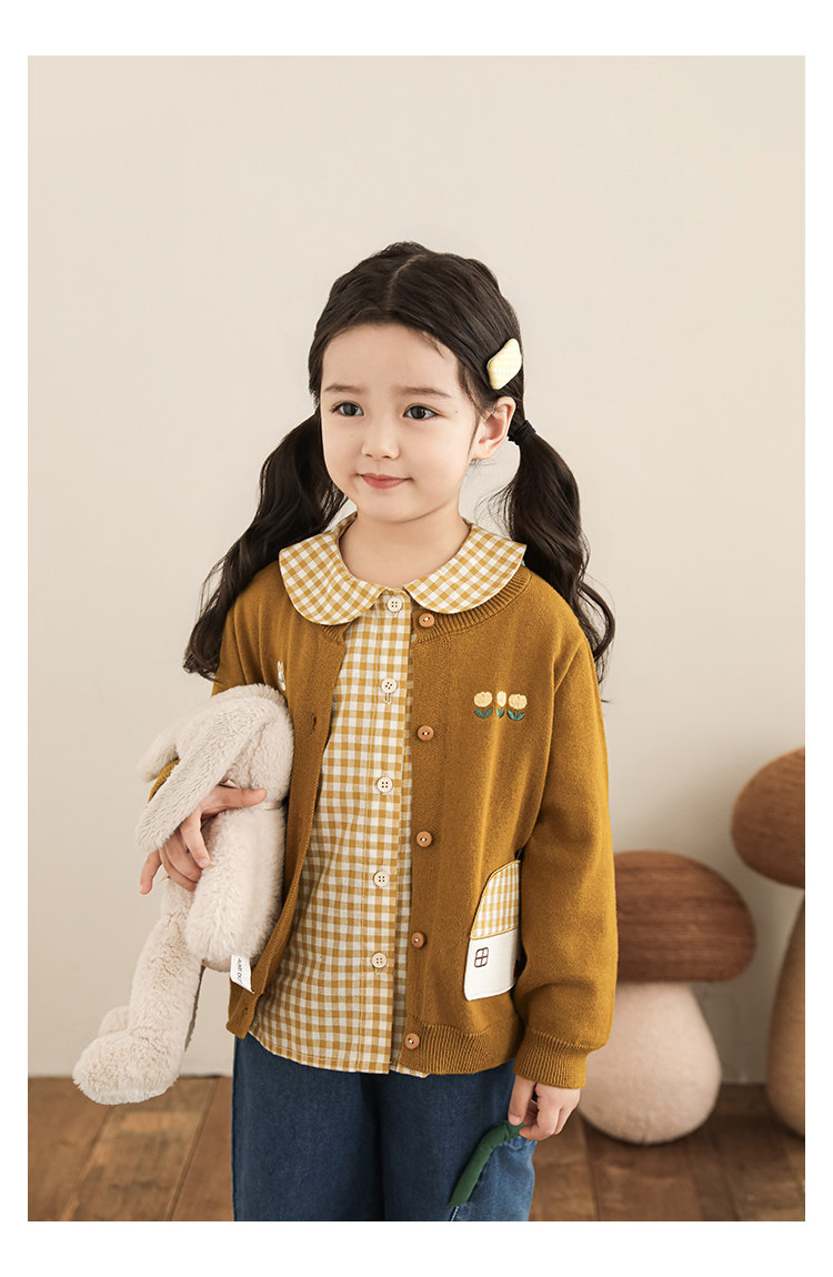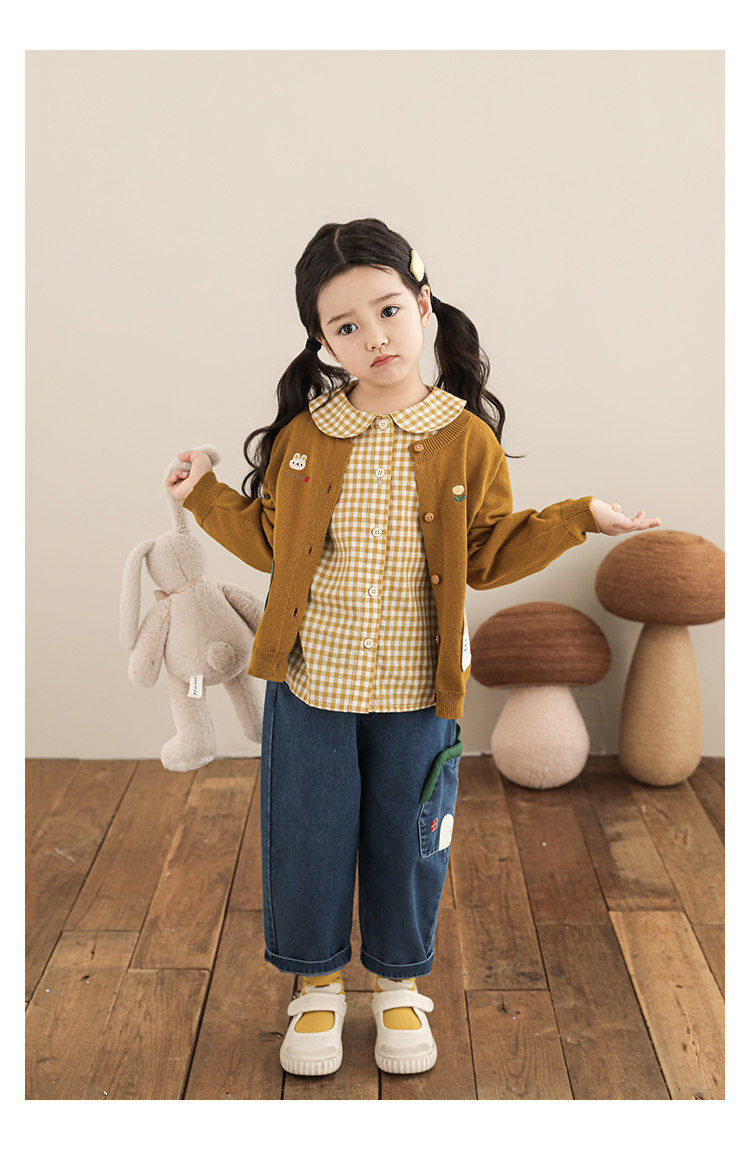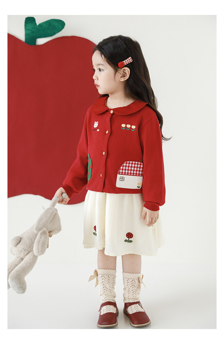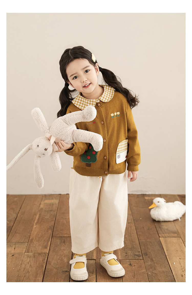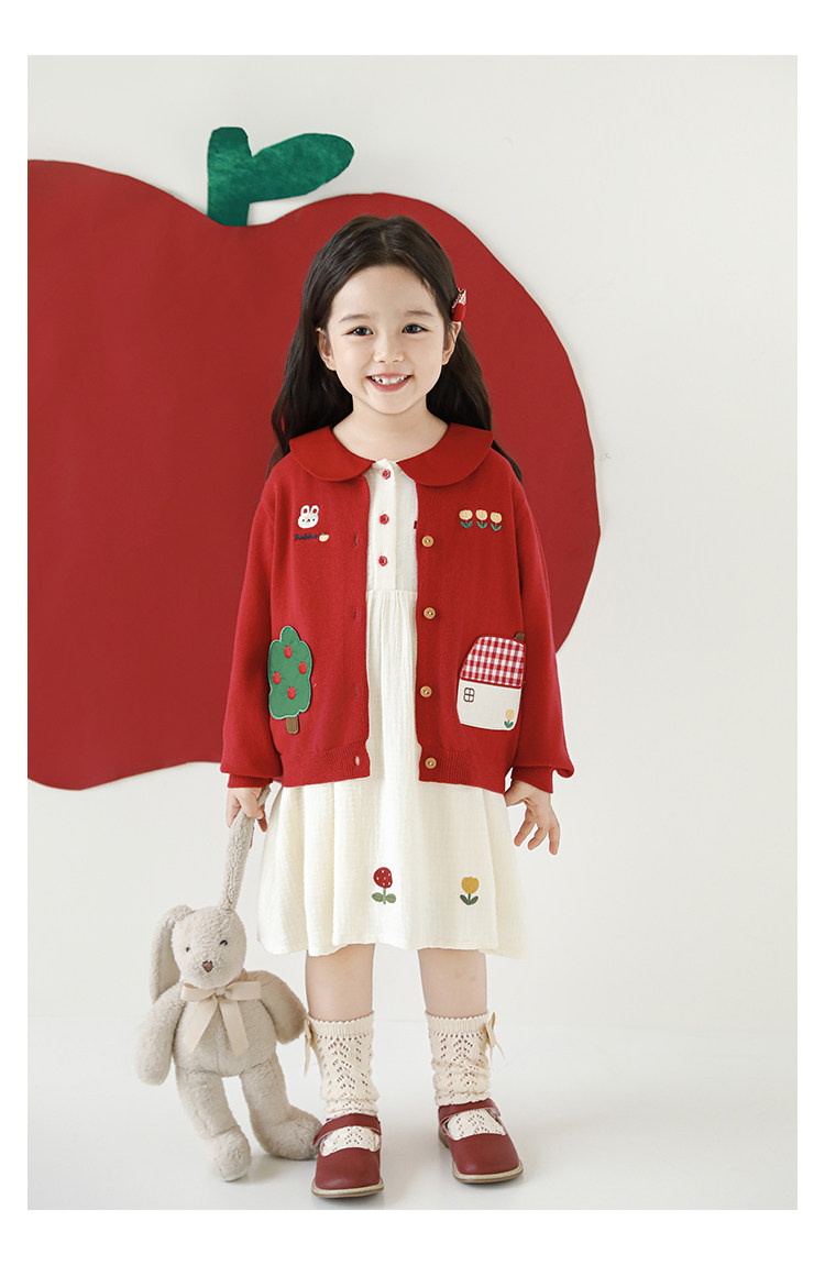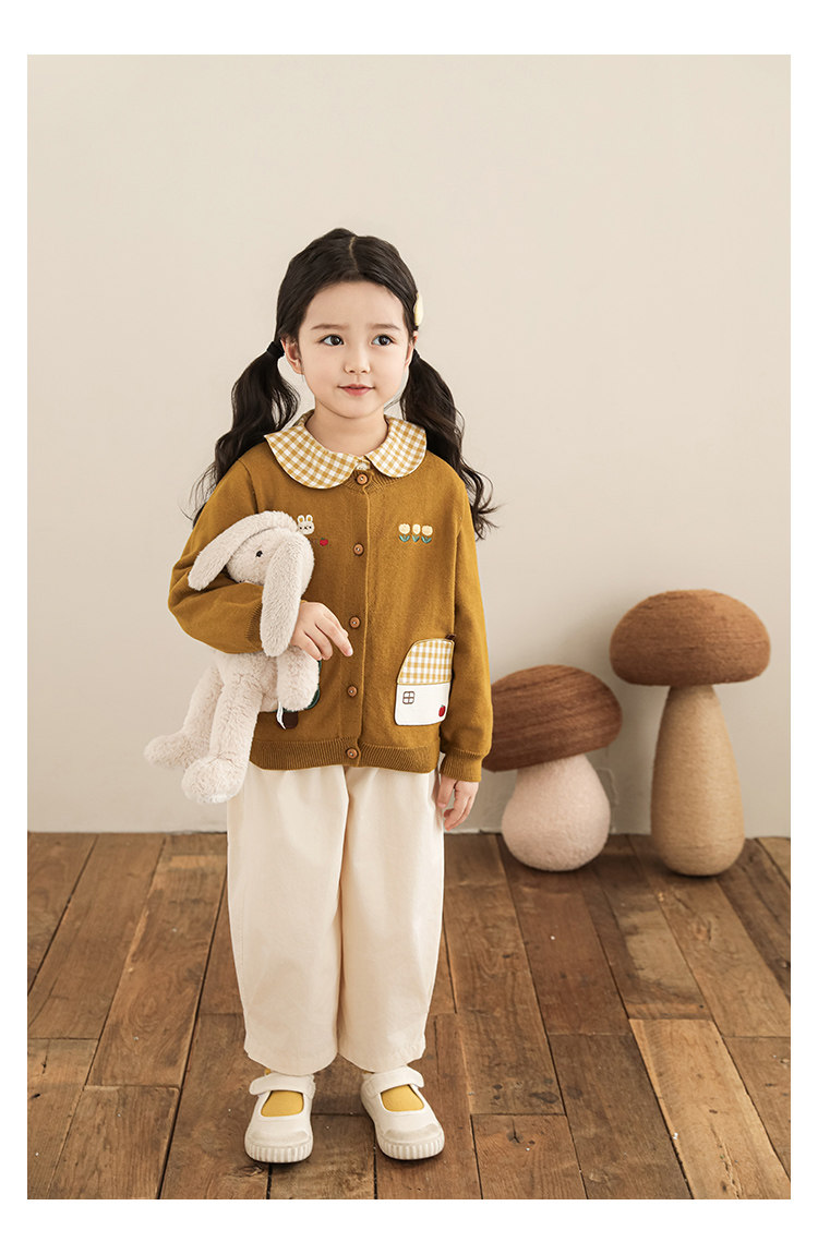 Wulibu 소녀 만화 하우스 스웨터 가디건 가을 에너지 넘치는 골지 트리밍 튤립 자수 탑 트렌디스토어 가기