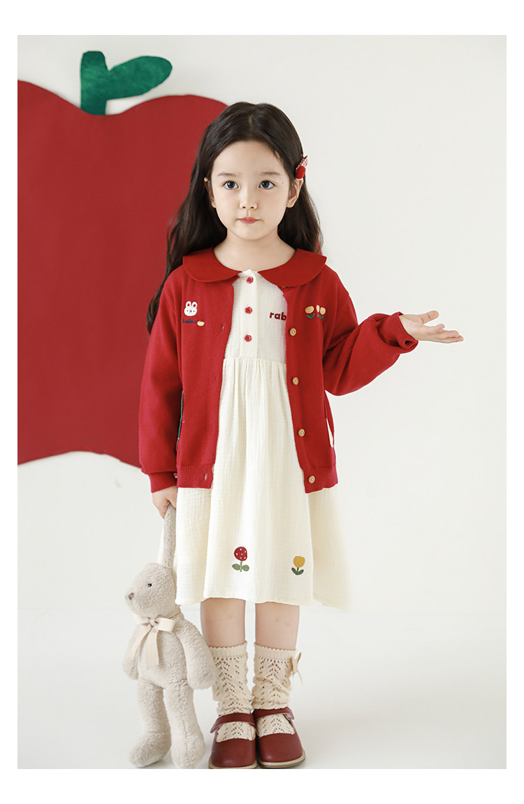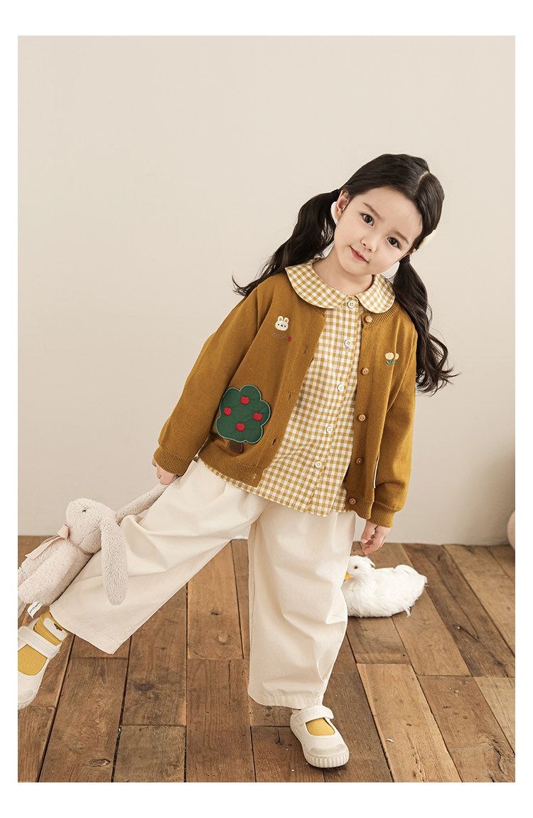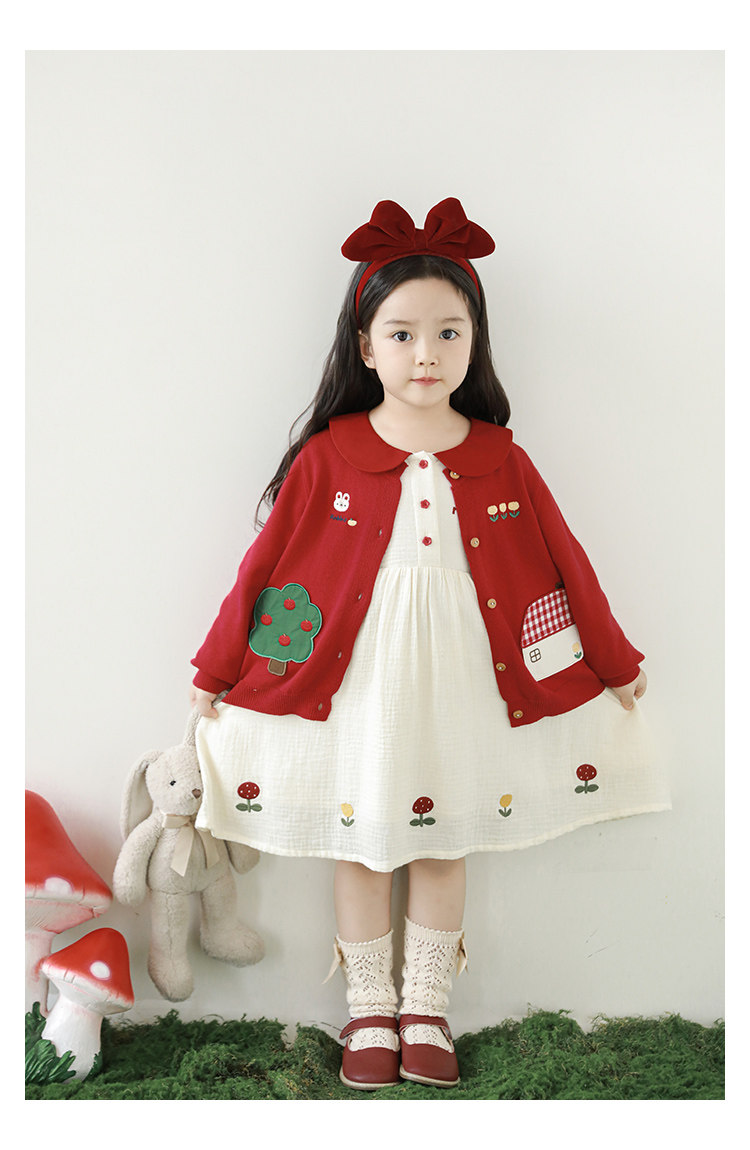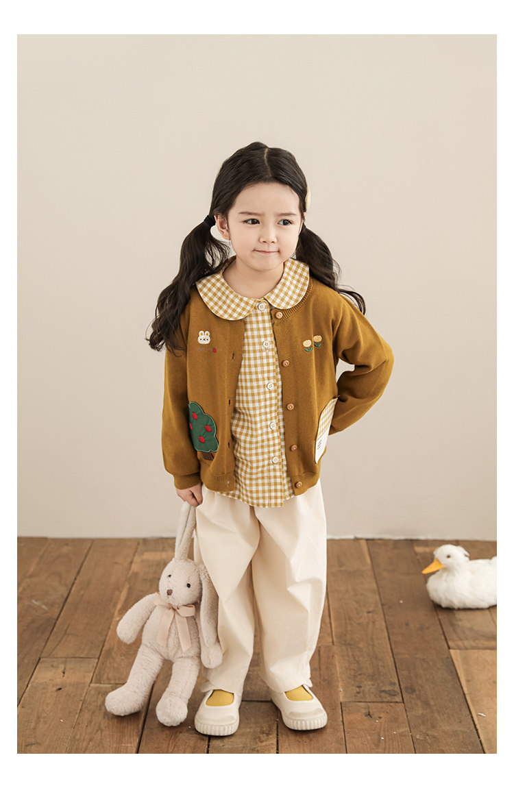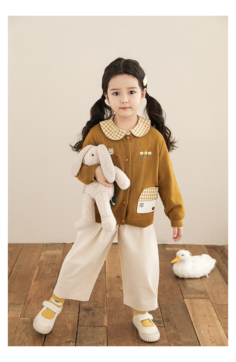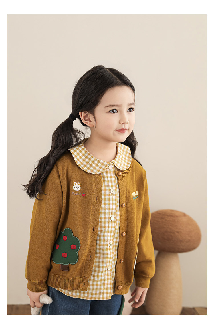 Wulibu 소녀 만화 하우스 스웨터 가디건 가을 에너지 넘치는 골지 트리밍 튤립 자수 탑 트렌디스토어 가기