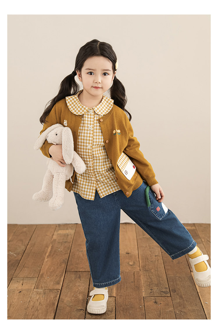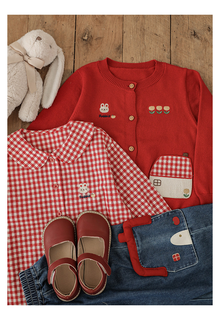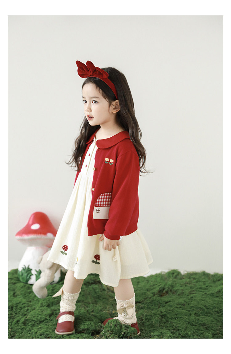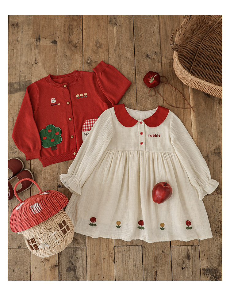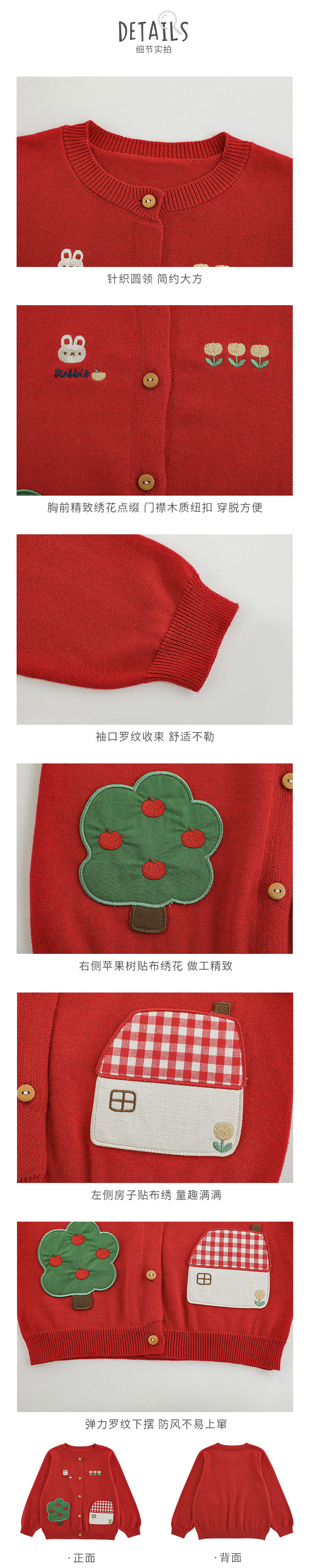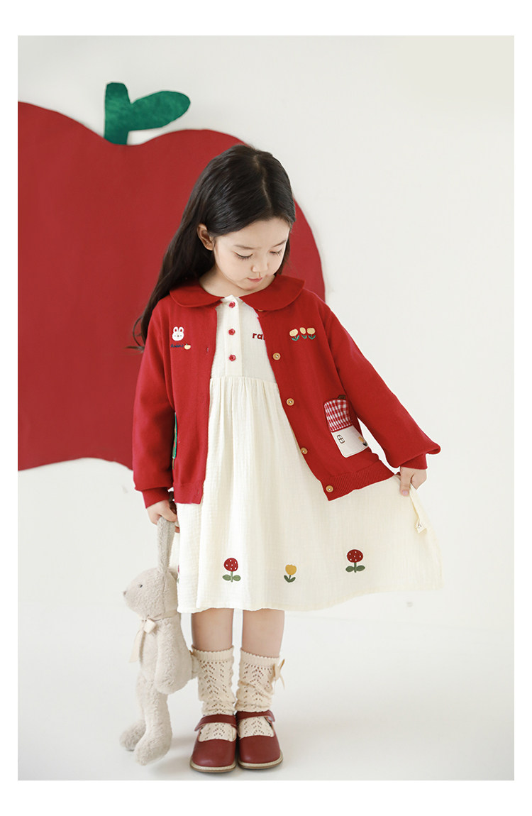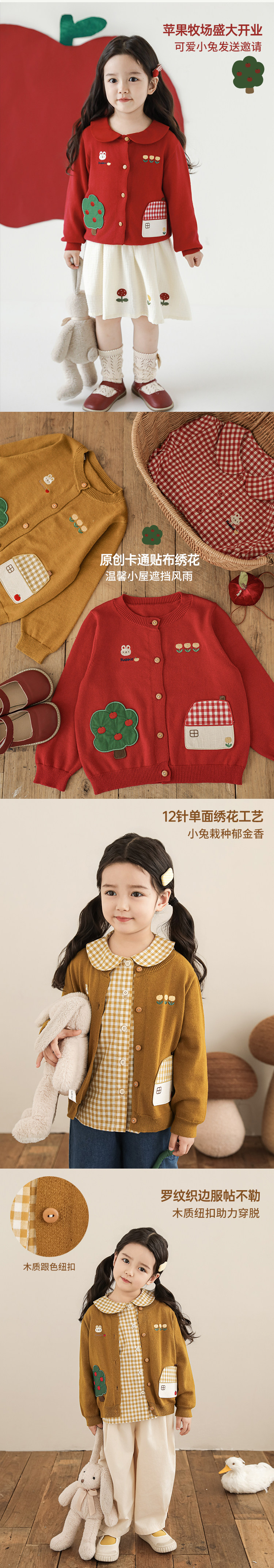 Wulibu 소녀 만화 하우스 스웨터 가디건 가을 에너지 넘치는 골지 트리밍 튤립 자수 탑 트렌디스토어 가기
