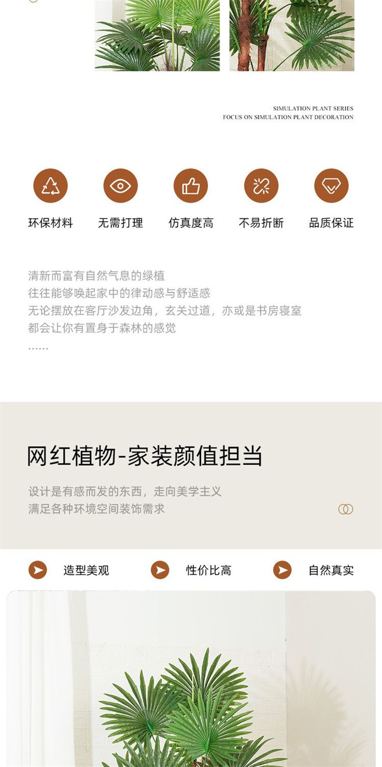 시뮬레이션 캘리포니아 푸쿠이 팬 해바라기 나무 녹색 심기 가짜 나무 풍경 라운드 리프 푸 홈 거실 쇼핑몰 가게 장식 장식품스토어 가기