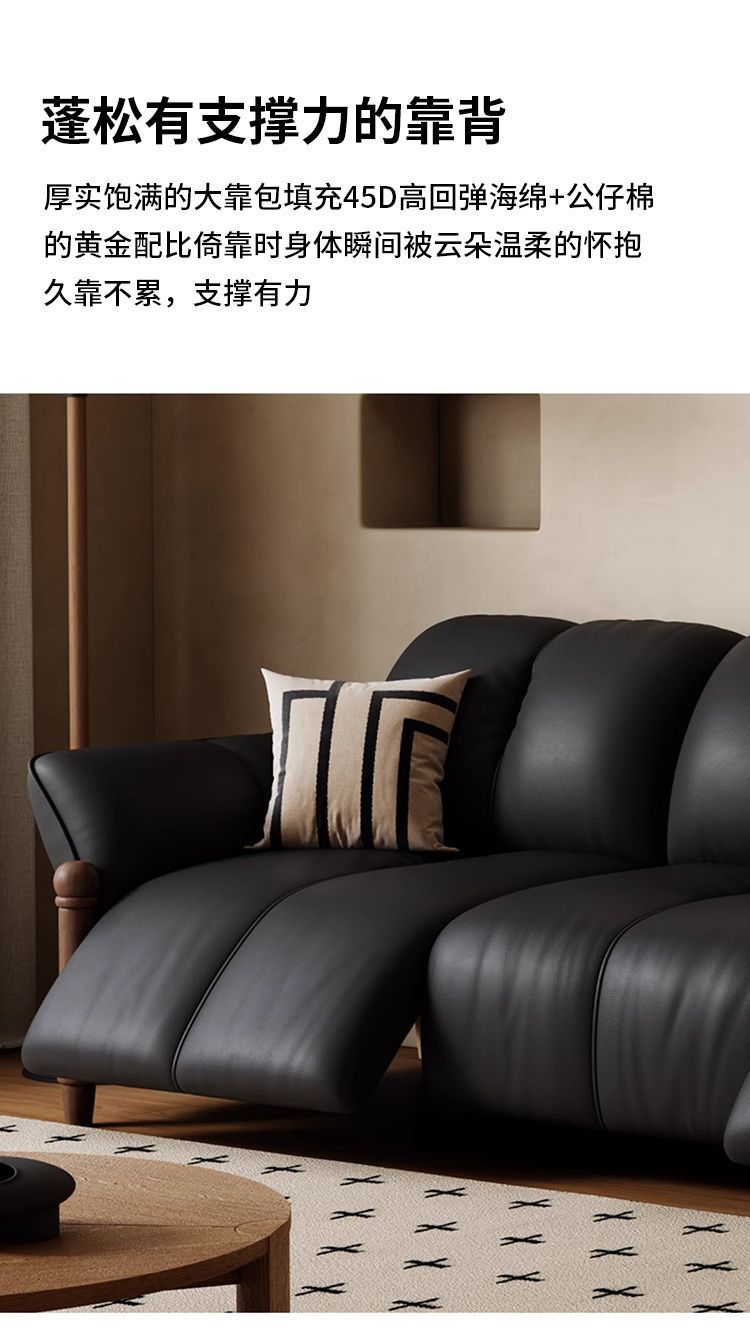레트로 스타일 간단한 작은 아파트 하이 엔드 가죽 블랙 레트로 소파 거실 현대 미니멀리스트 벽 기능 소파스토어 가기
