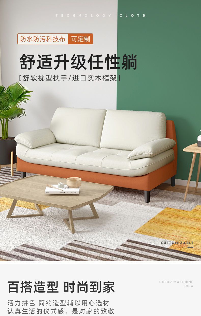 새로운 기술 천 소파 세척 무료 패브릭 소파 거실 작은 아파트 더블 소파 북유럽 간단한 사무실 소파스토어 가기