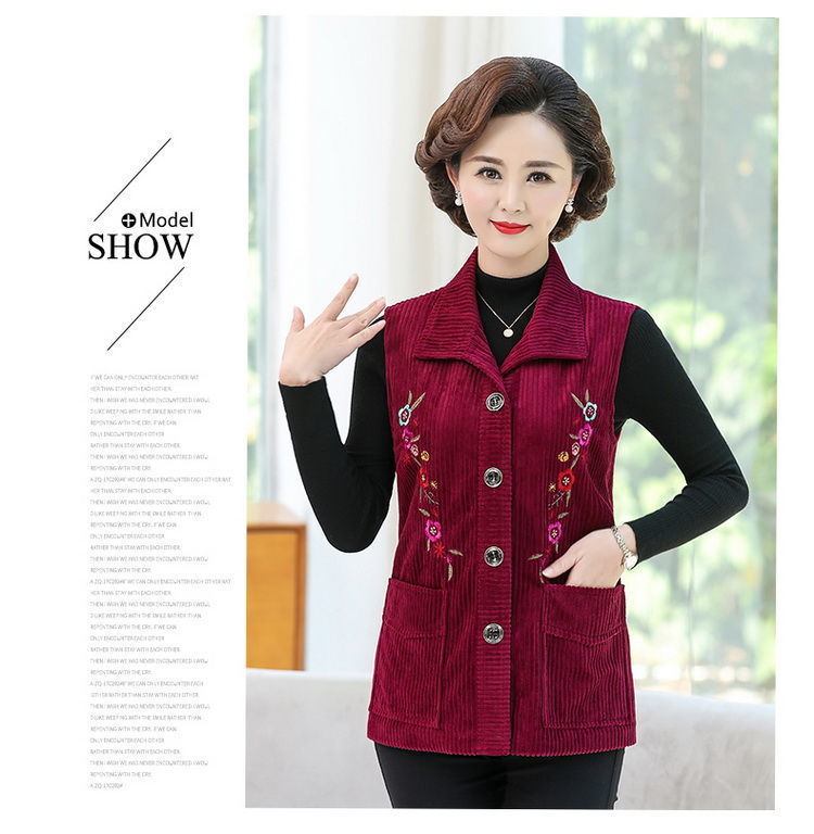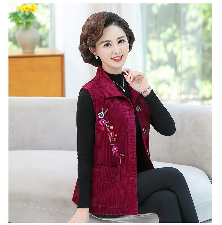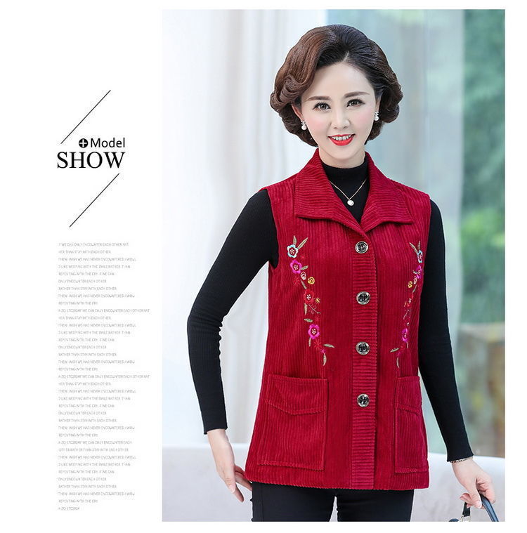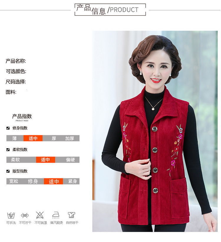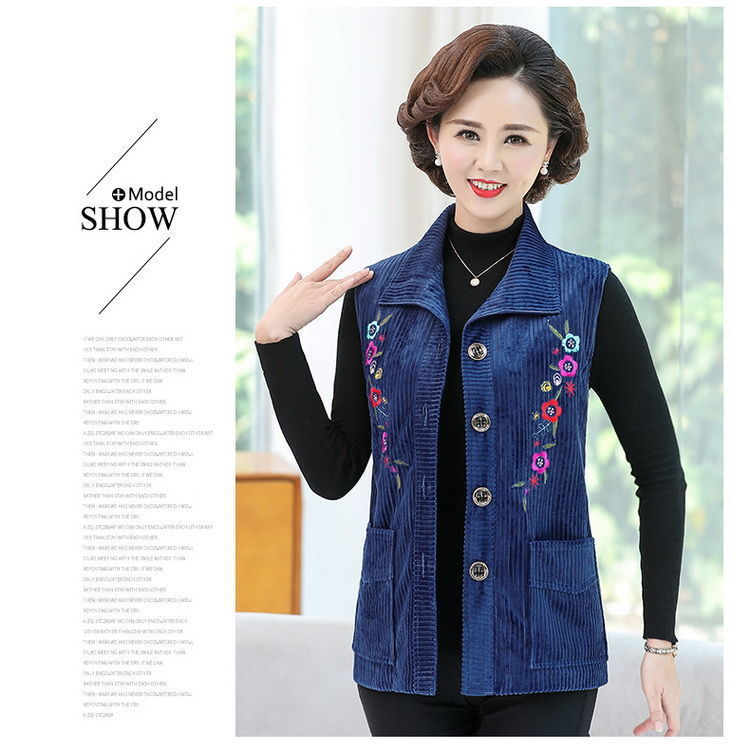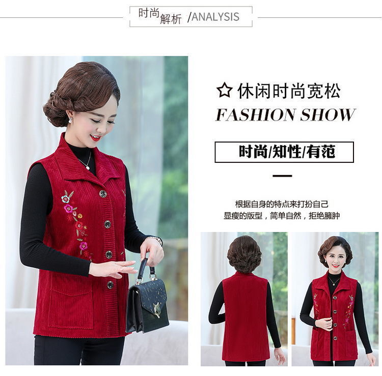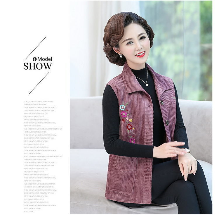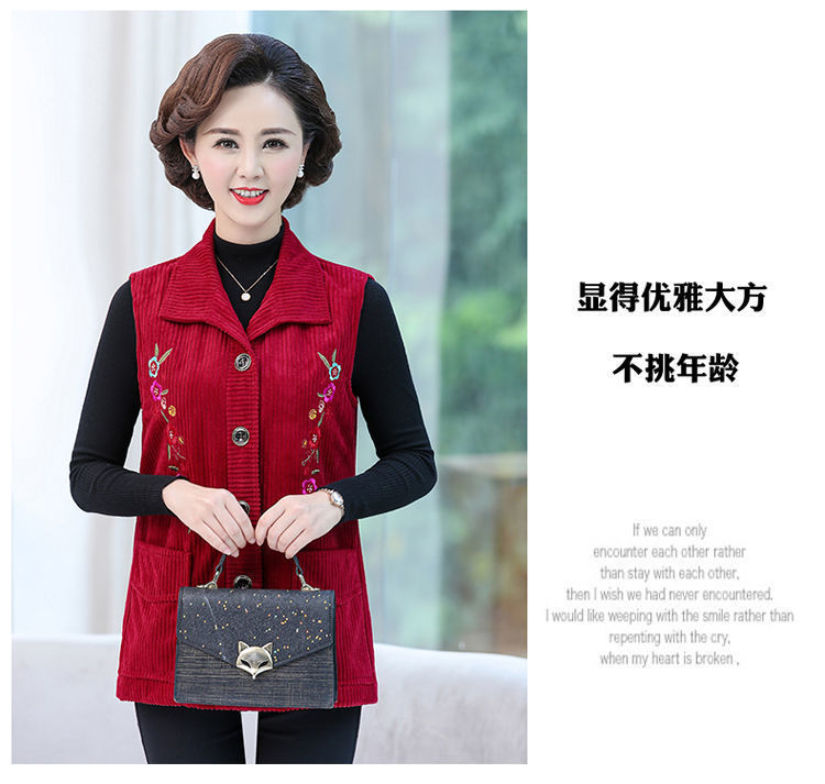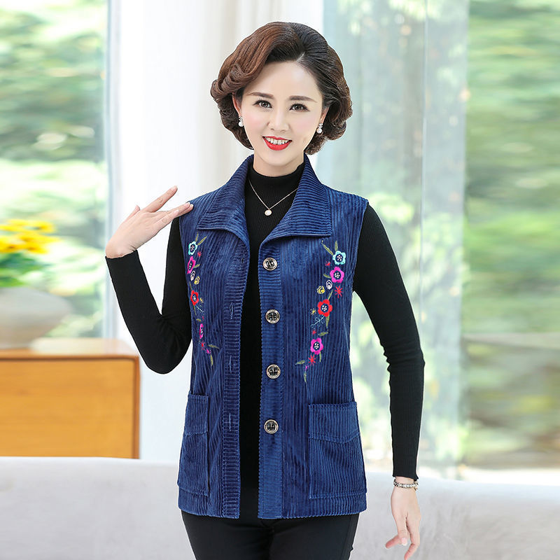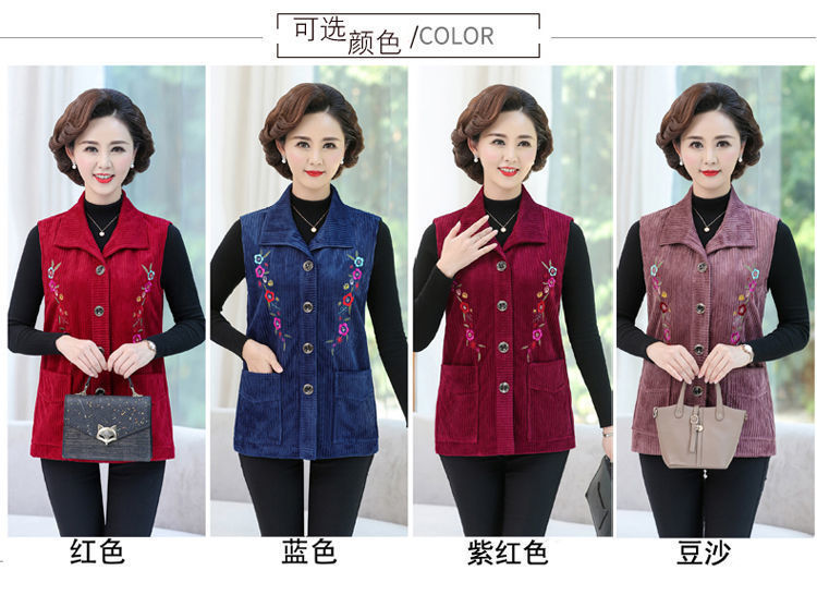 중년 및 노인 여성 의류 어머니 양복 조끼 여성 봄과 가을 노인 양복 조끼 여성 겉옷 할머니의 코듀로이 양복 조끼