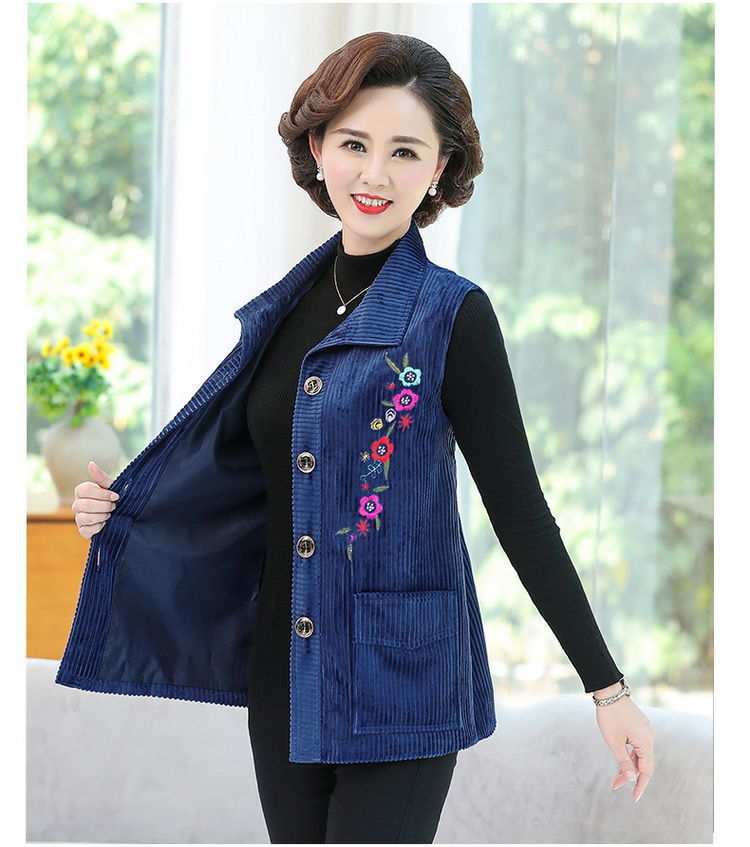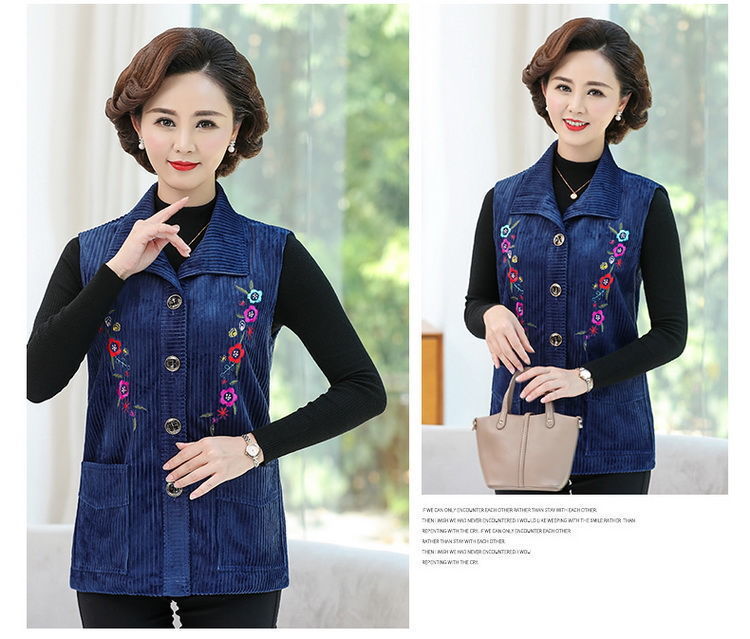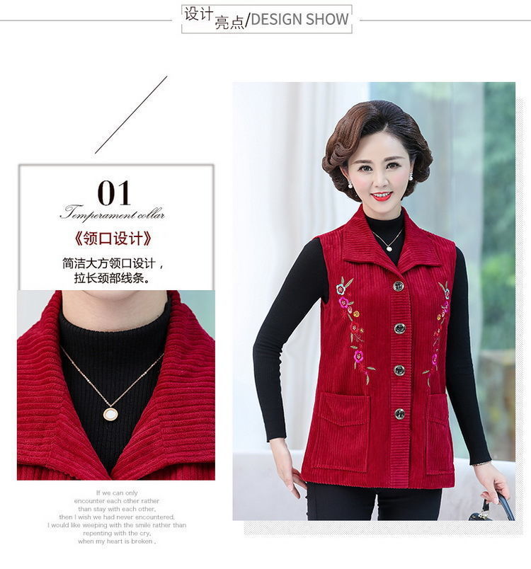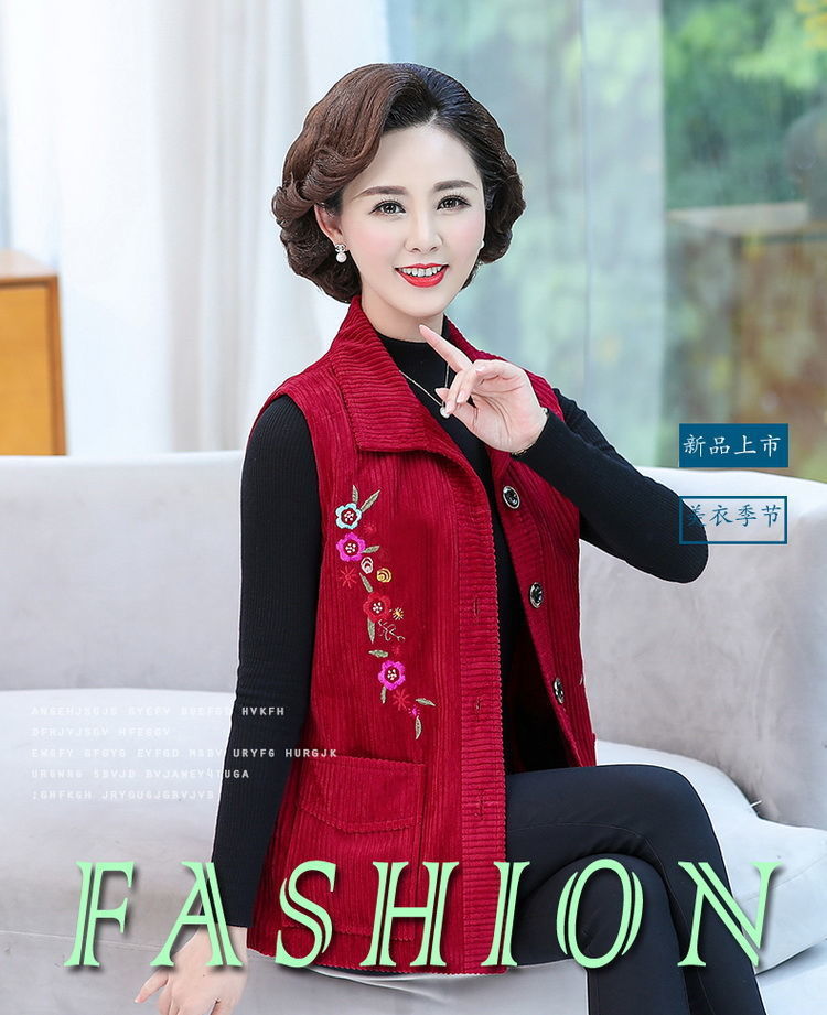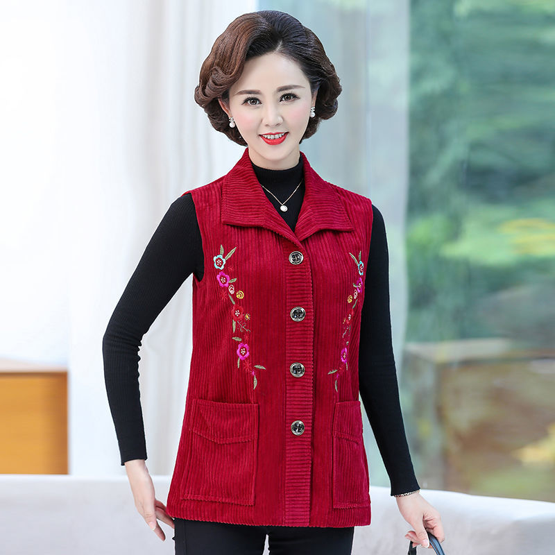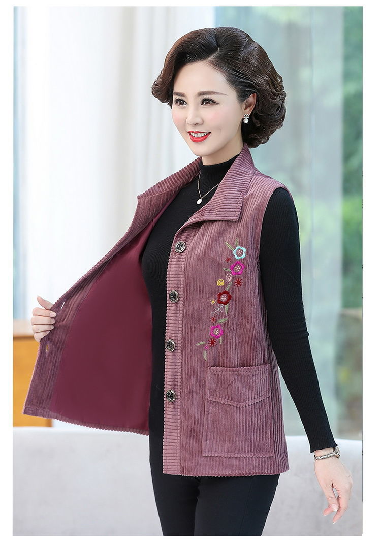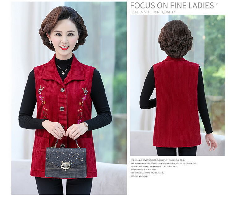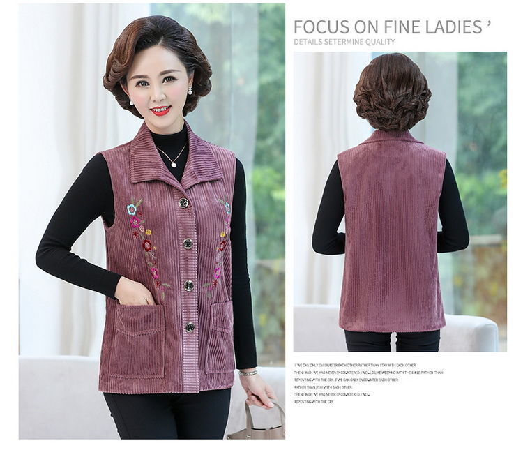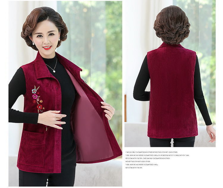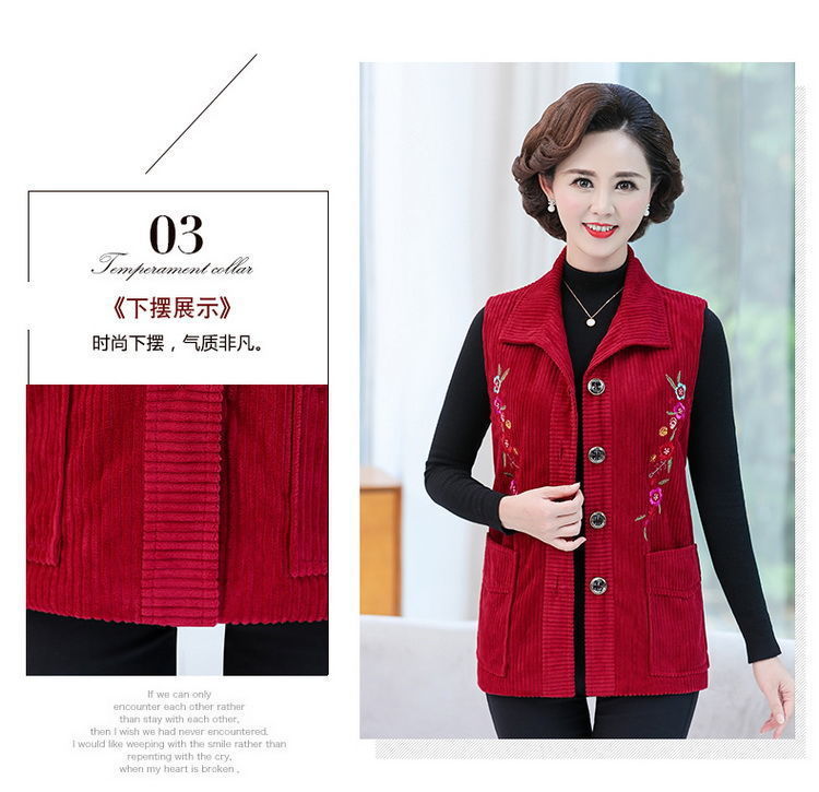 중년 및 노인 여성 의류 어머니 양복 조끼 여성 봄과 가을 노인 양복 조끼 여성 겉옷 할머니의 코듀로이 양복 조끼