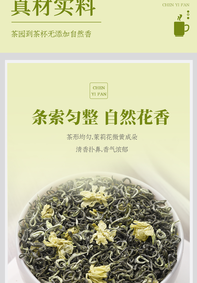 Chen Yifan Jasmine 차 사천 파이 눈 새 차 봄 차 루저우 맛 알파인 차 마오 펑 벌크 재스민 녹차