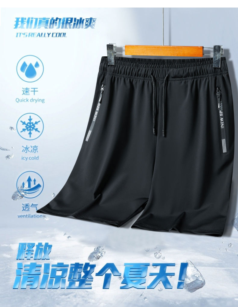 [선택] 고탄성 나일론 아이스 실크 반바지 남자 여름 플러스 사이즈 느슨한 신속 건조 통기성 5 점 레저 스포츠스토어 가기