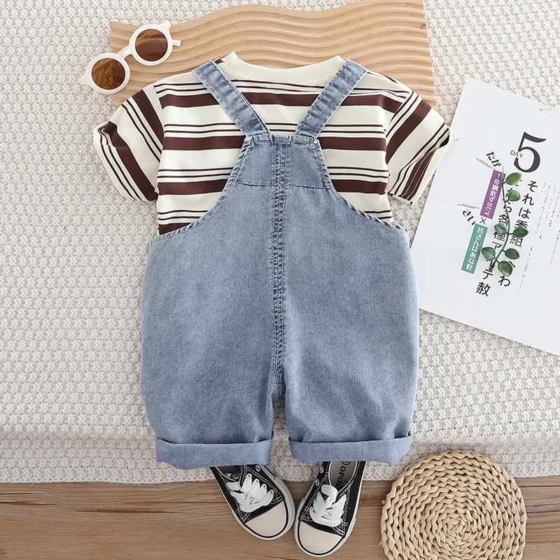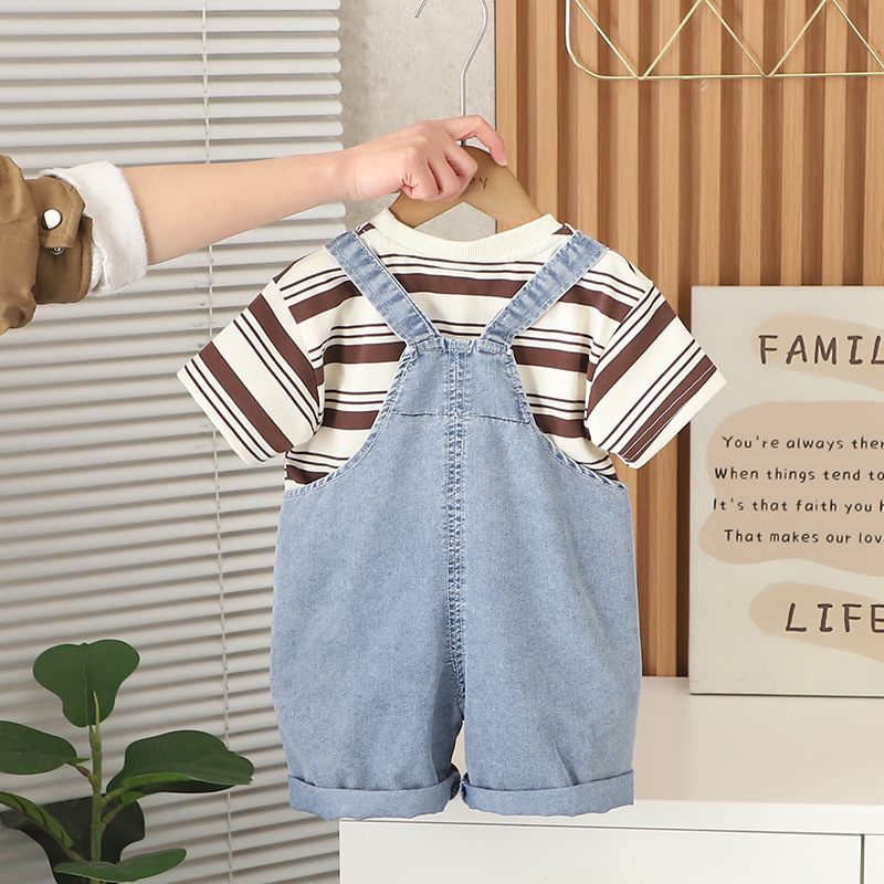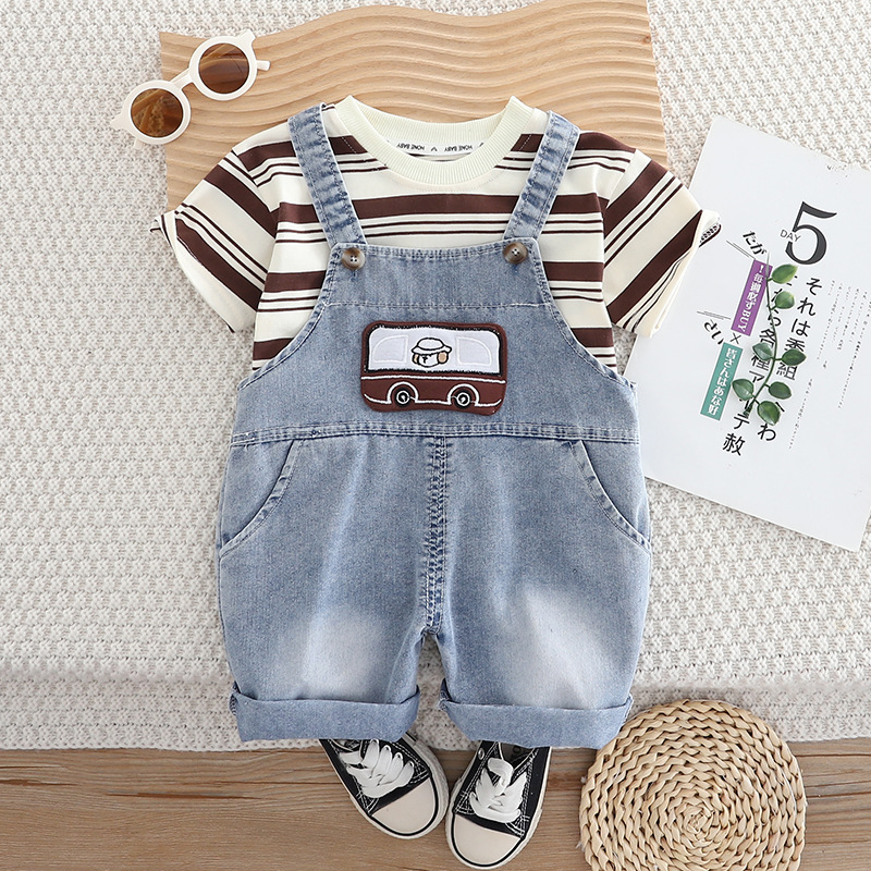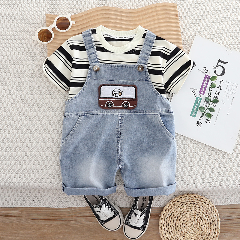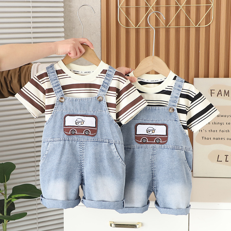 남자들의 여름 세트 2025 새로운 한국 스타일 아기 소년의 줄무늬 자동차 투피스 트렌디 세트스토어 가기