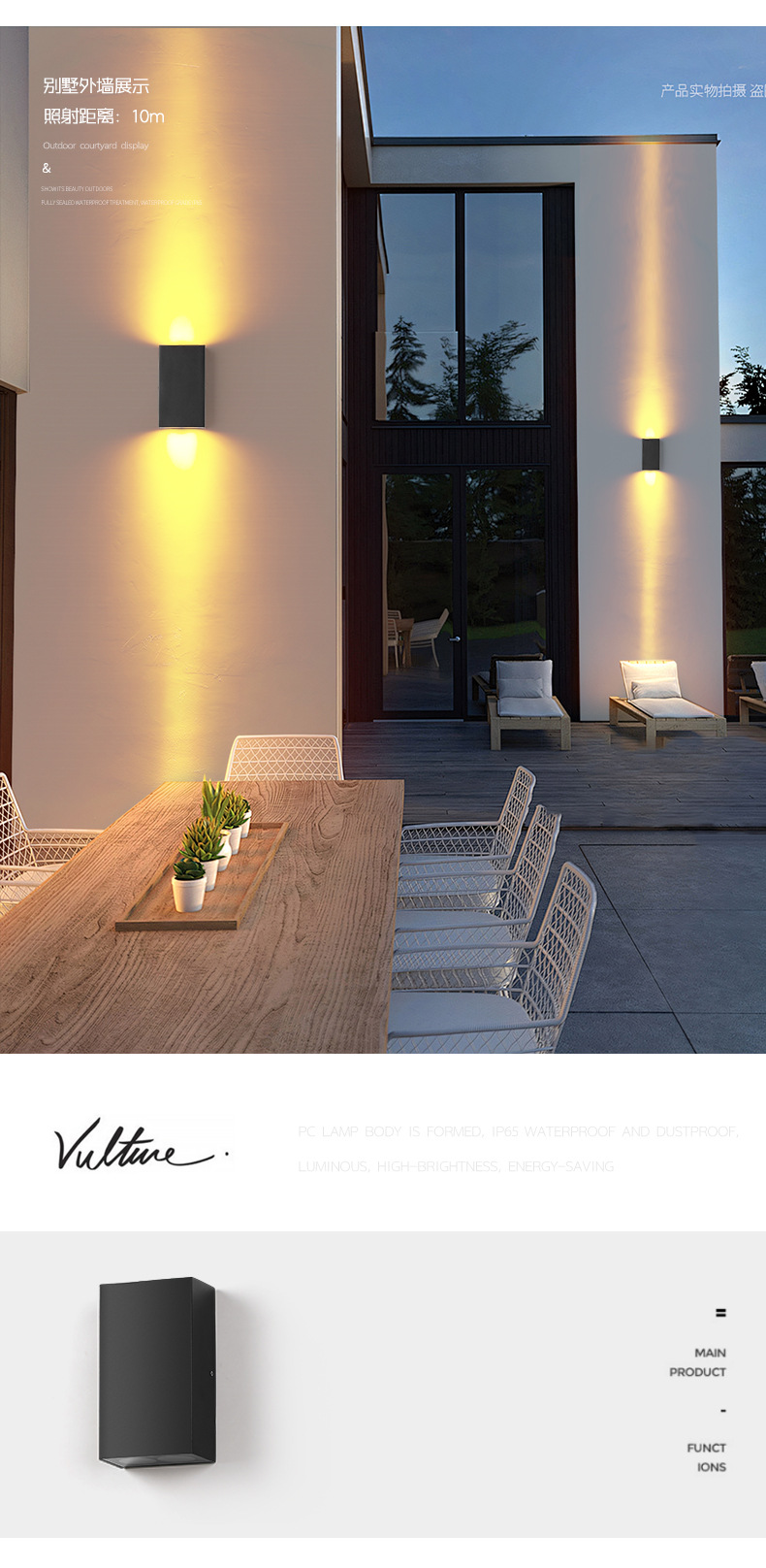 외벽 기둥 세척 벽 램프에 따라 국경 간 야외 더블 헤드 조명 조명 방수 빌라 안뜰 문 위아래로