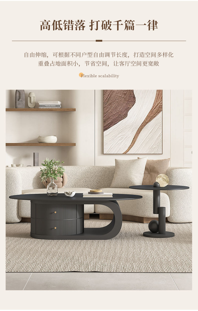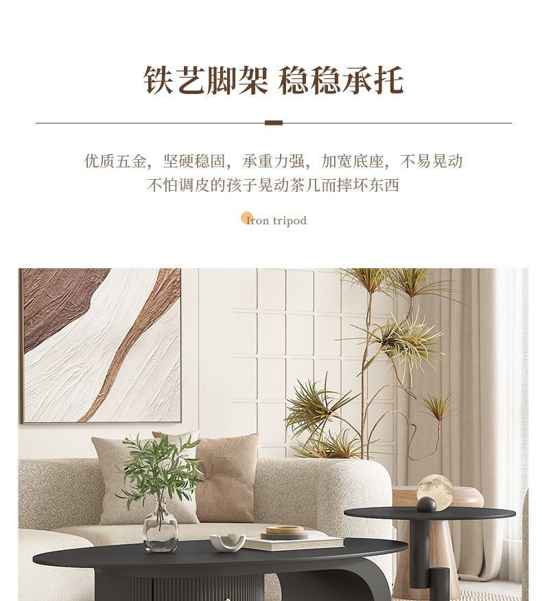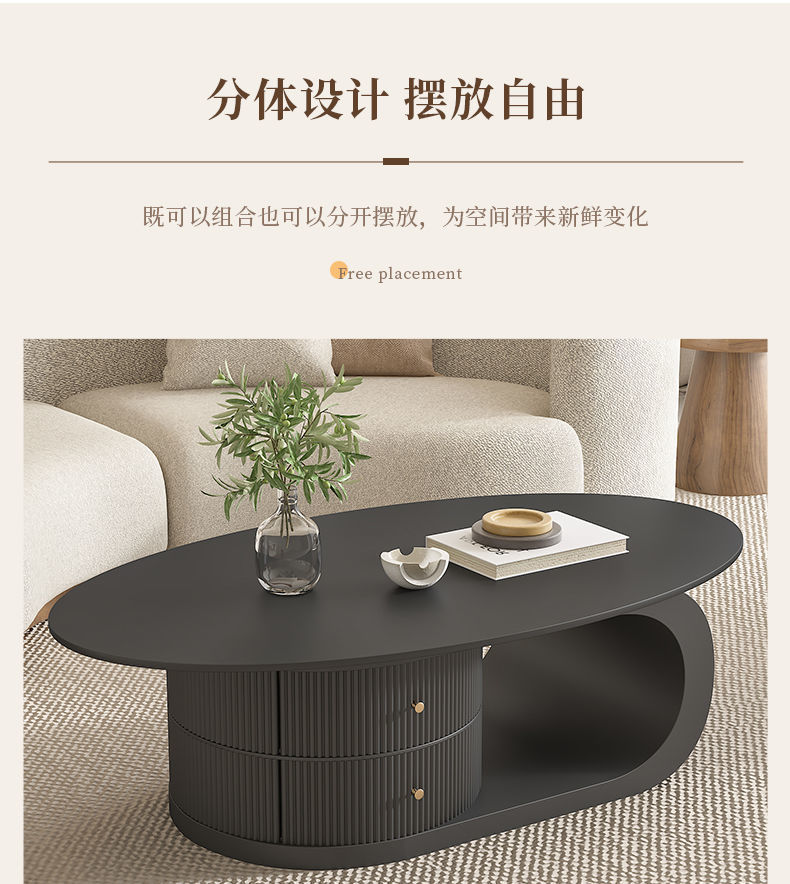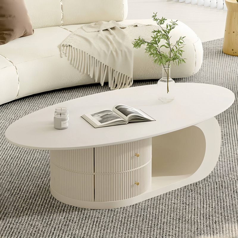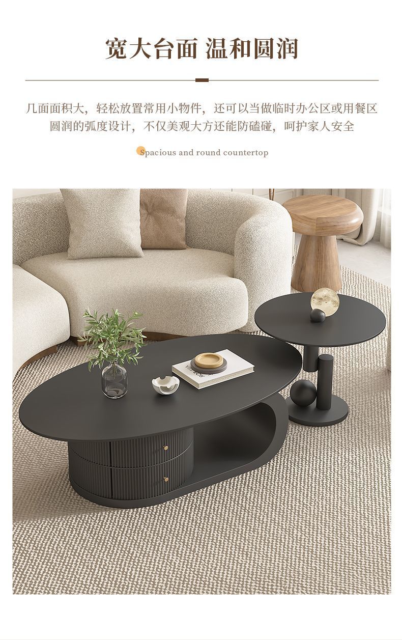 타원형 록 보드 커피 테이블 거실 가정용 현대 고급 간단한 작은 아파트 크림 스타일 작은 인터넷 유명 인사 폭발