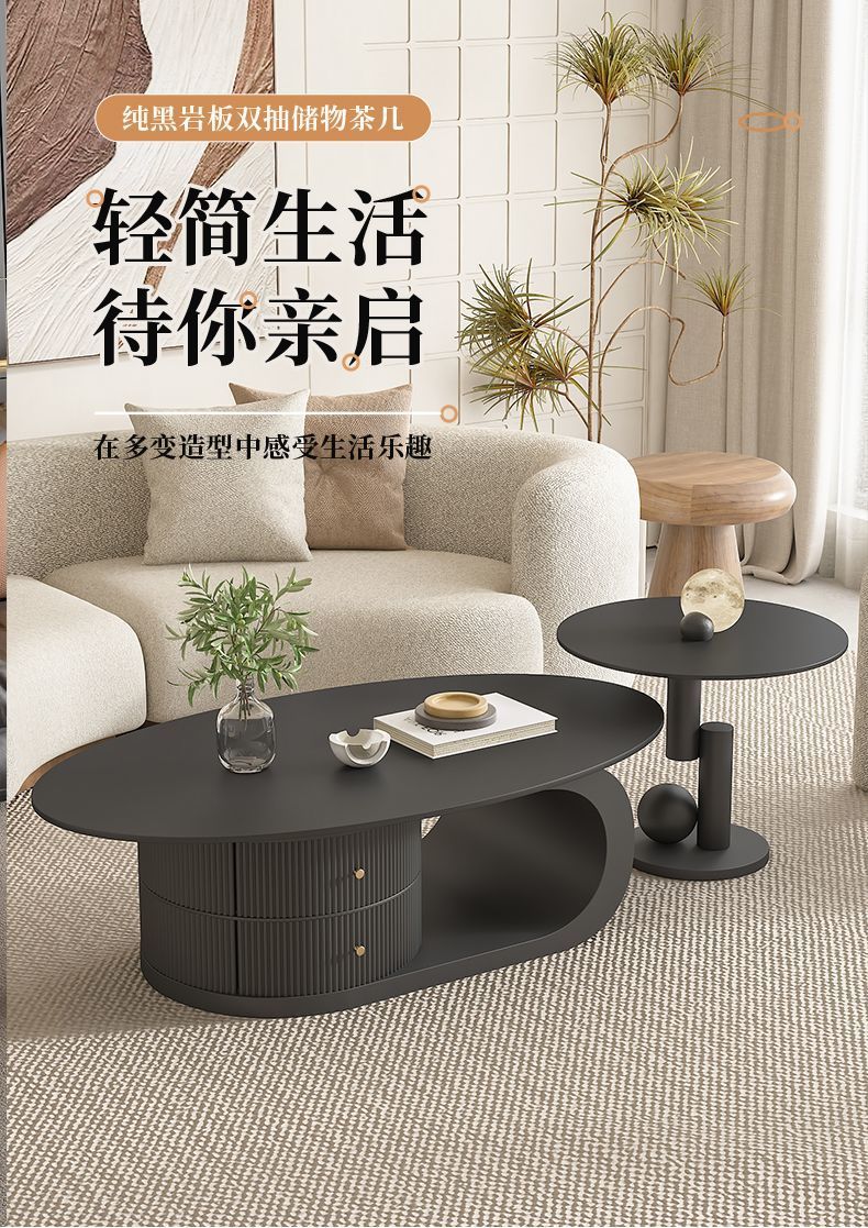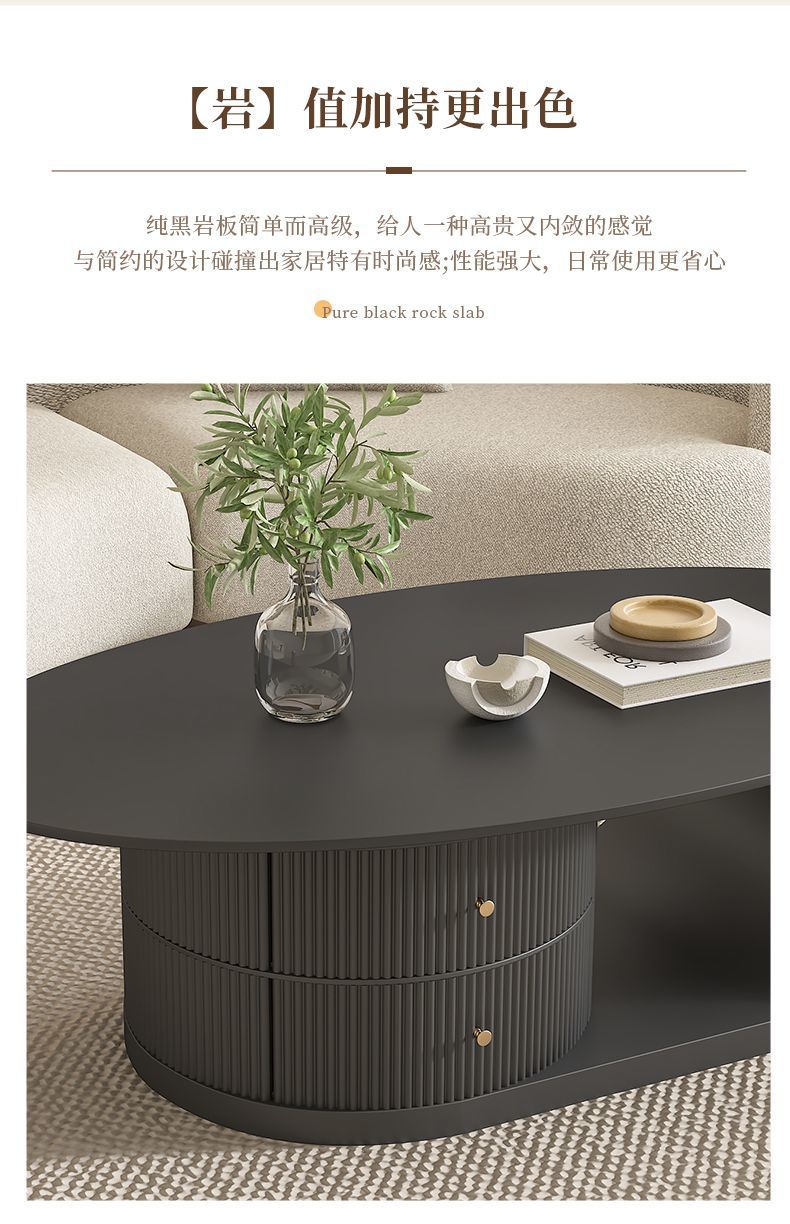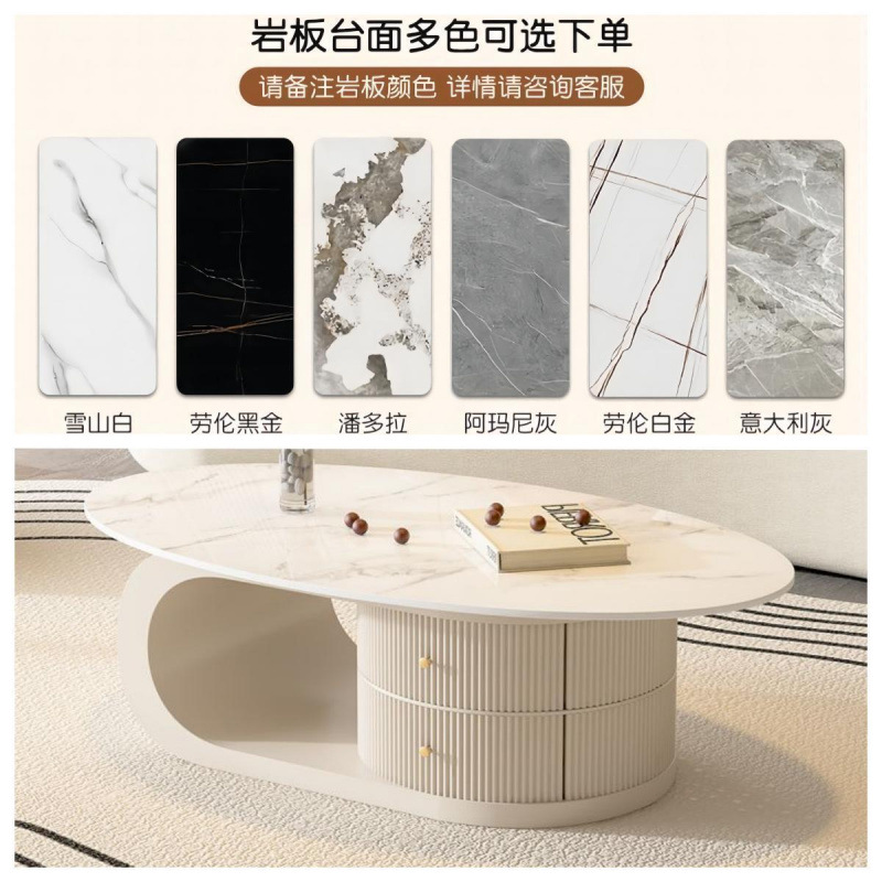 타원형 록 보드 커피 테이블 거실 가정용 현대 고급 간단한 작은 아파트 크림 스타일 작은 인터넷 유명 인사 폭발스토어 가기