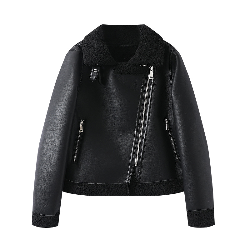 대외 무역 여성 의류 유럽과 미국 스타일 패션 올 매치 옷깃 지퍼 모피 원피스 재킷 코트 짧은 오토바이 탑스토어 가기
