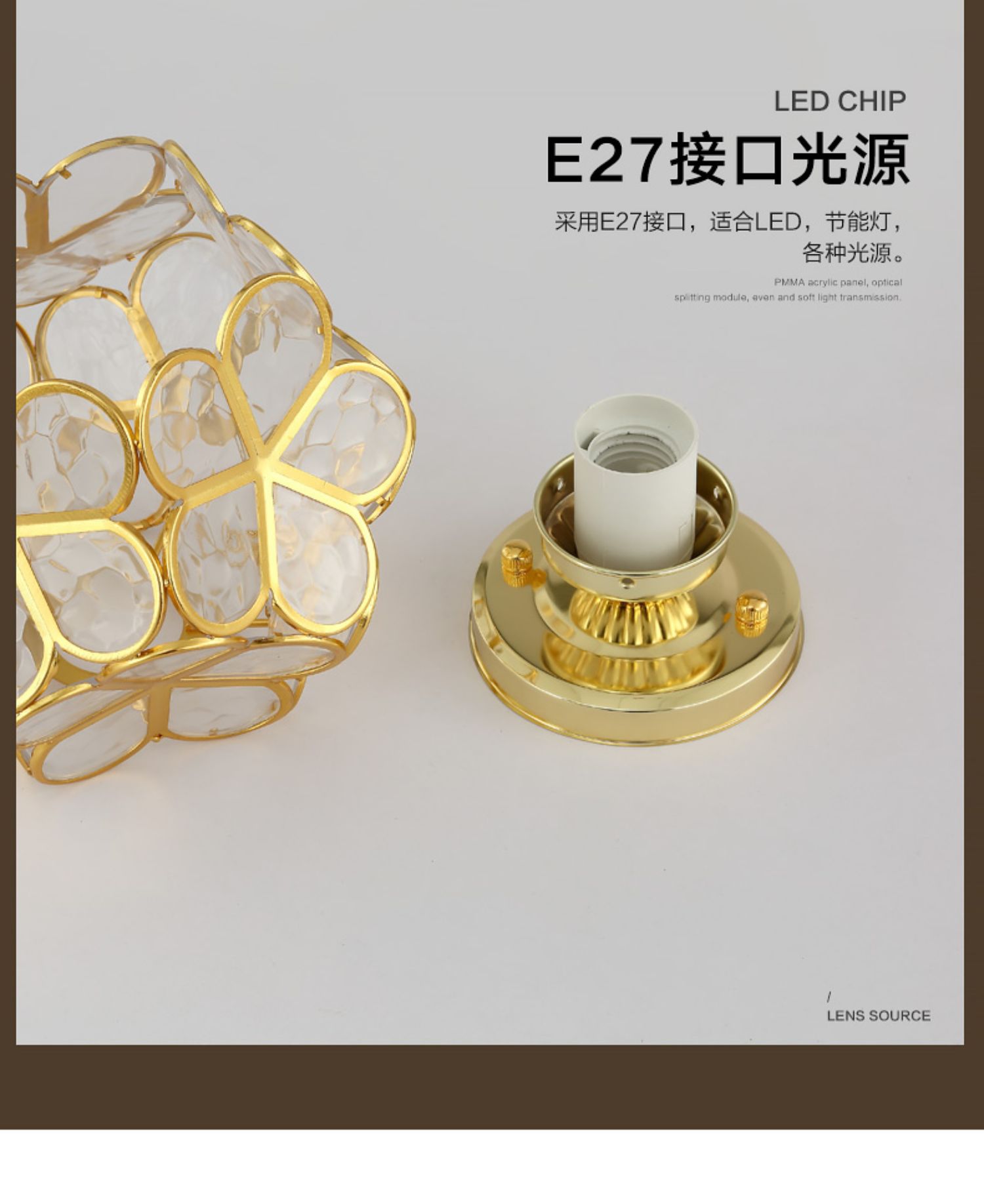 • 꽃잎 램프 금색 가장자리 흰색 투명 커버