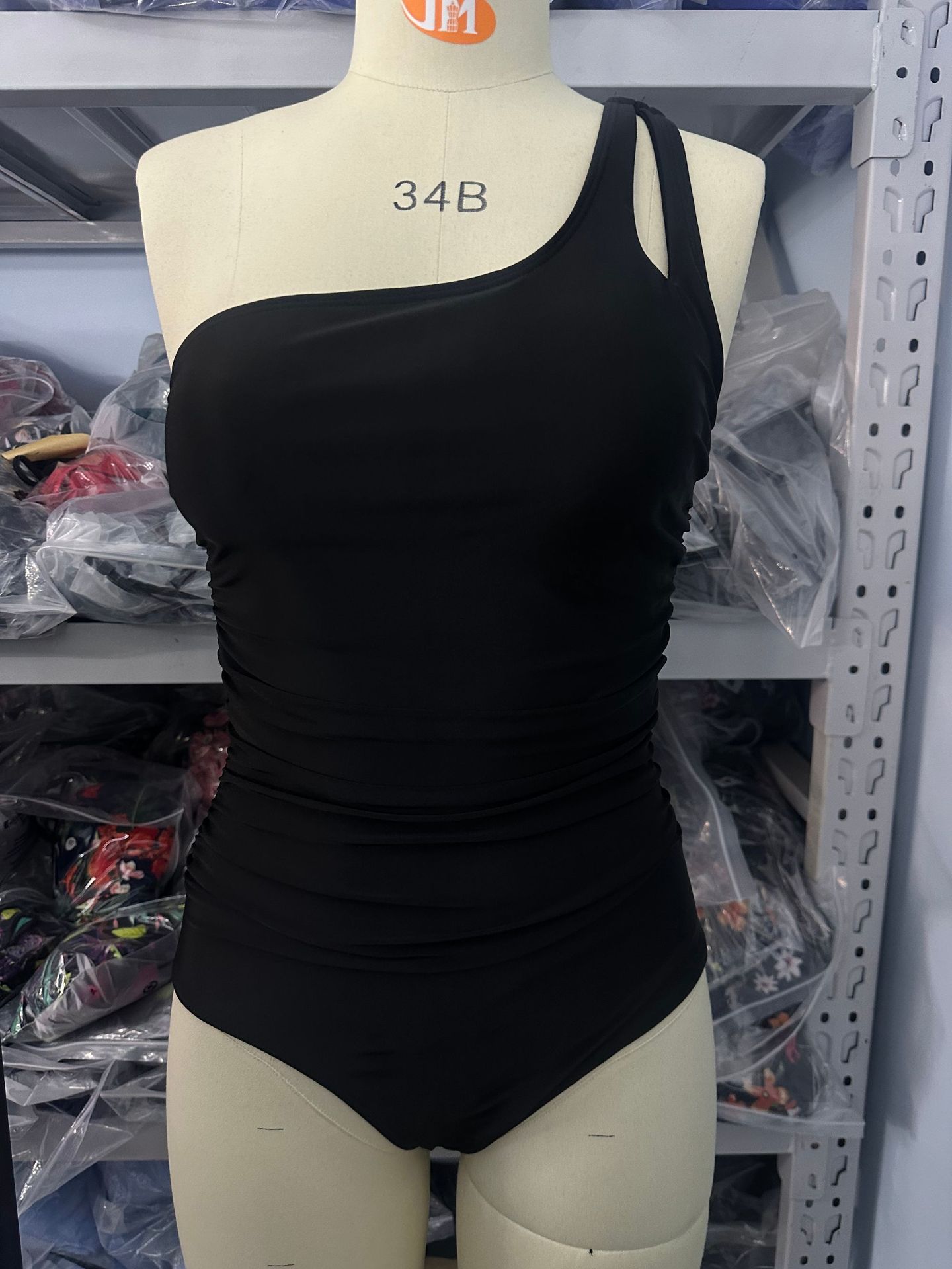 2025 새로운 대외 무역 유럽과 미국의 원피스 수영복 여성 비스듬한 어깨 빈 보수 레오파드 무늬 원피스 수영복 아마존