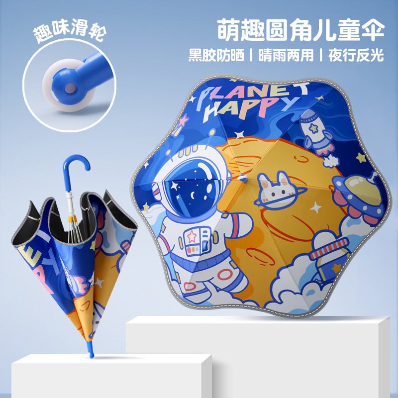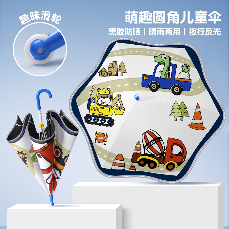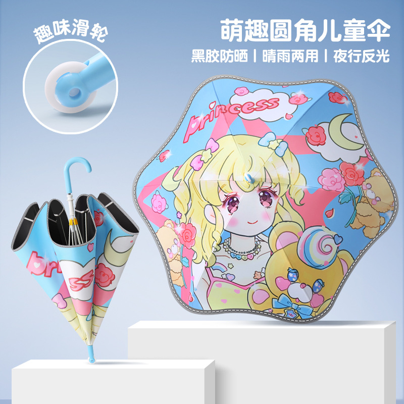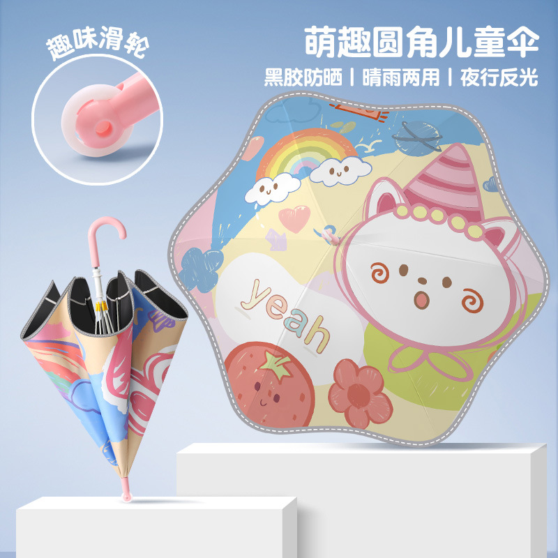 풀리 필렛 소년 소녀 및 어린이를위한 어린이 맑고 비오는 만화 우산 학교 긴 손잡이 스트레이트 로드 우산 광고 우산