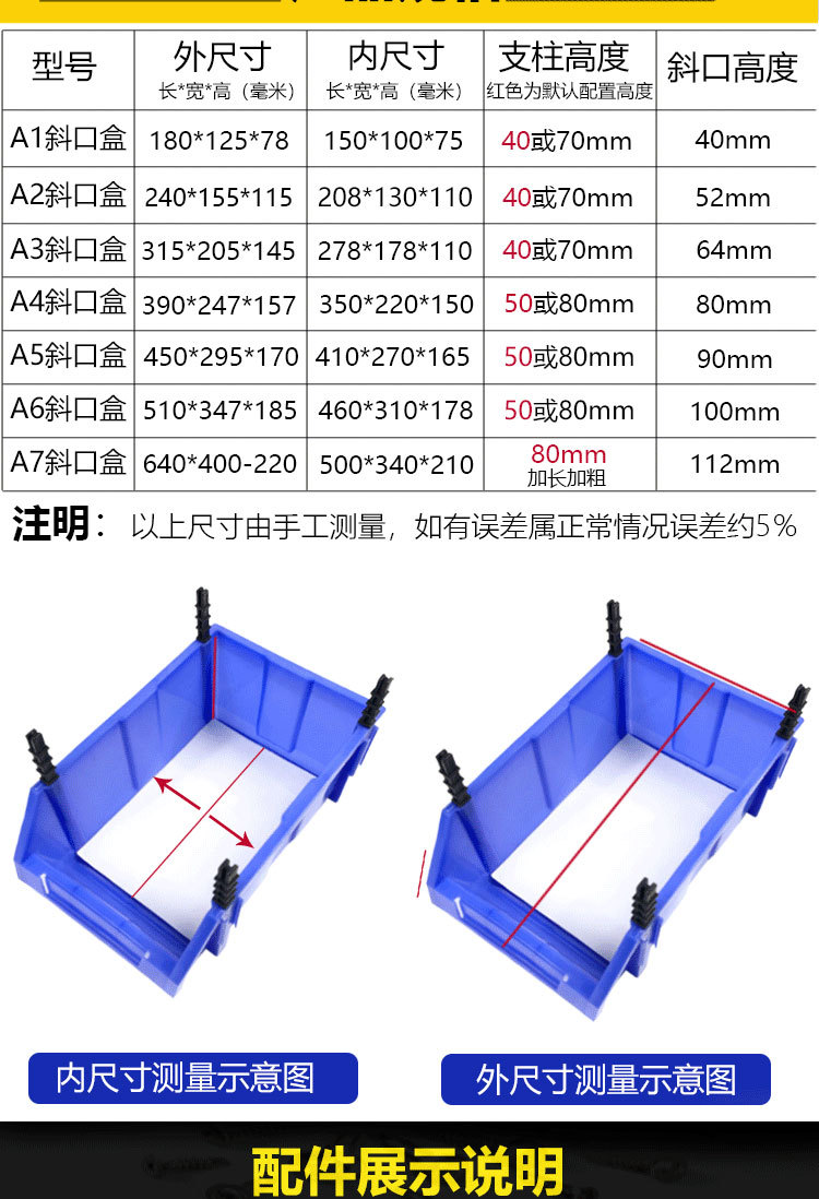 창고 보관 상자 비스듬한 나사 액세서리 부품 상자 결합 플라스틱 상자 직사각형 선반 분류 그리드