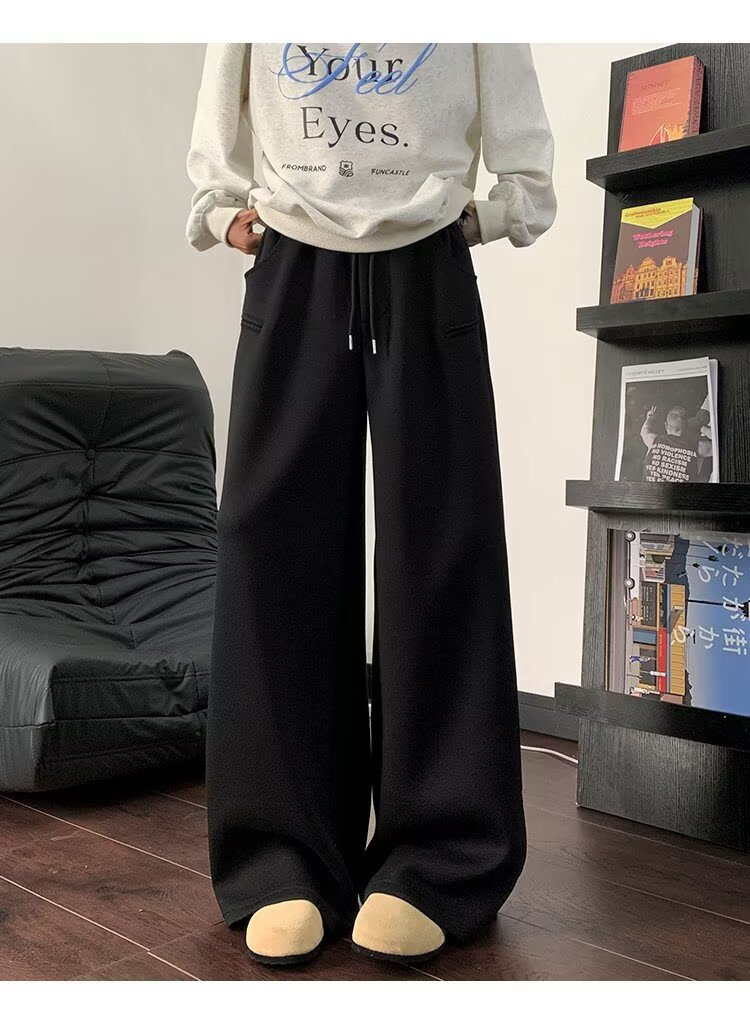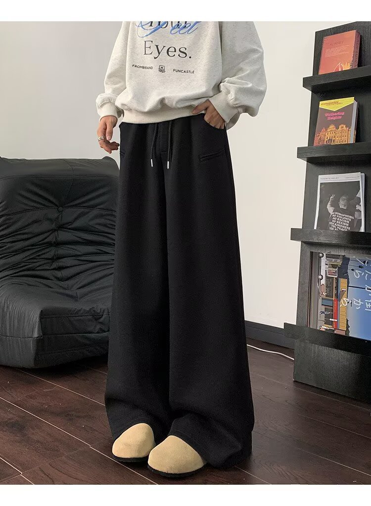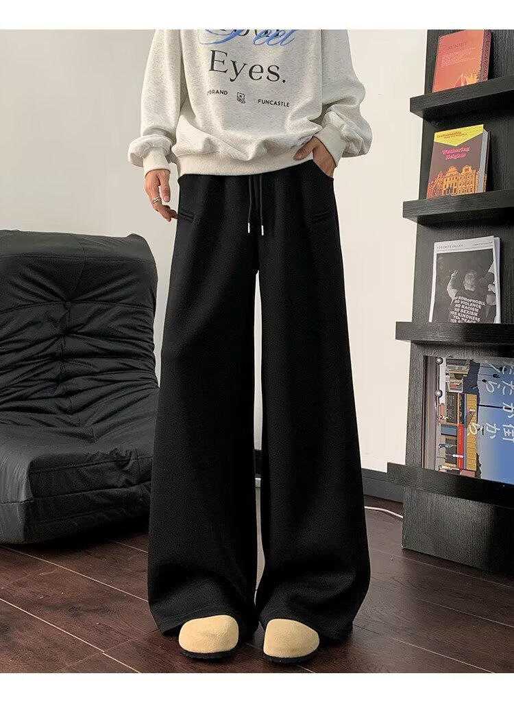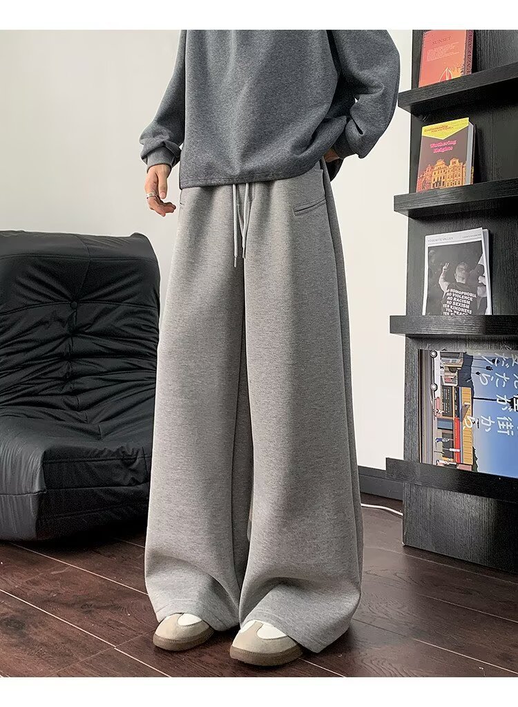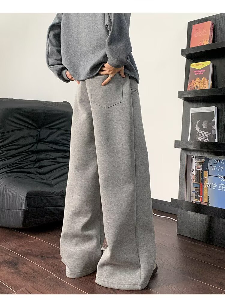 아메리칸 스타일 클렌핏 넓은 다리 바지 남자 봄과 가을 무거운 스포츠 바지 남자 캐주얼 바지 느슨한 스트레이트 바지