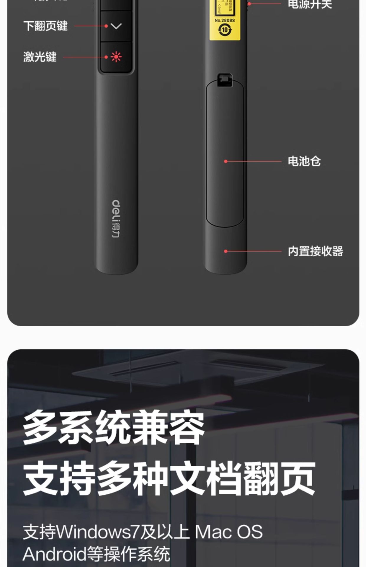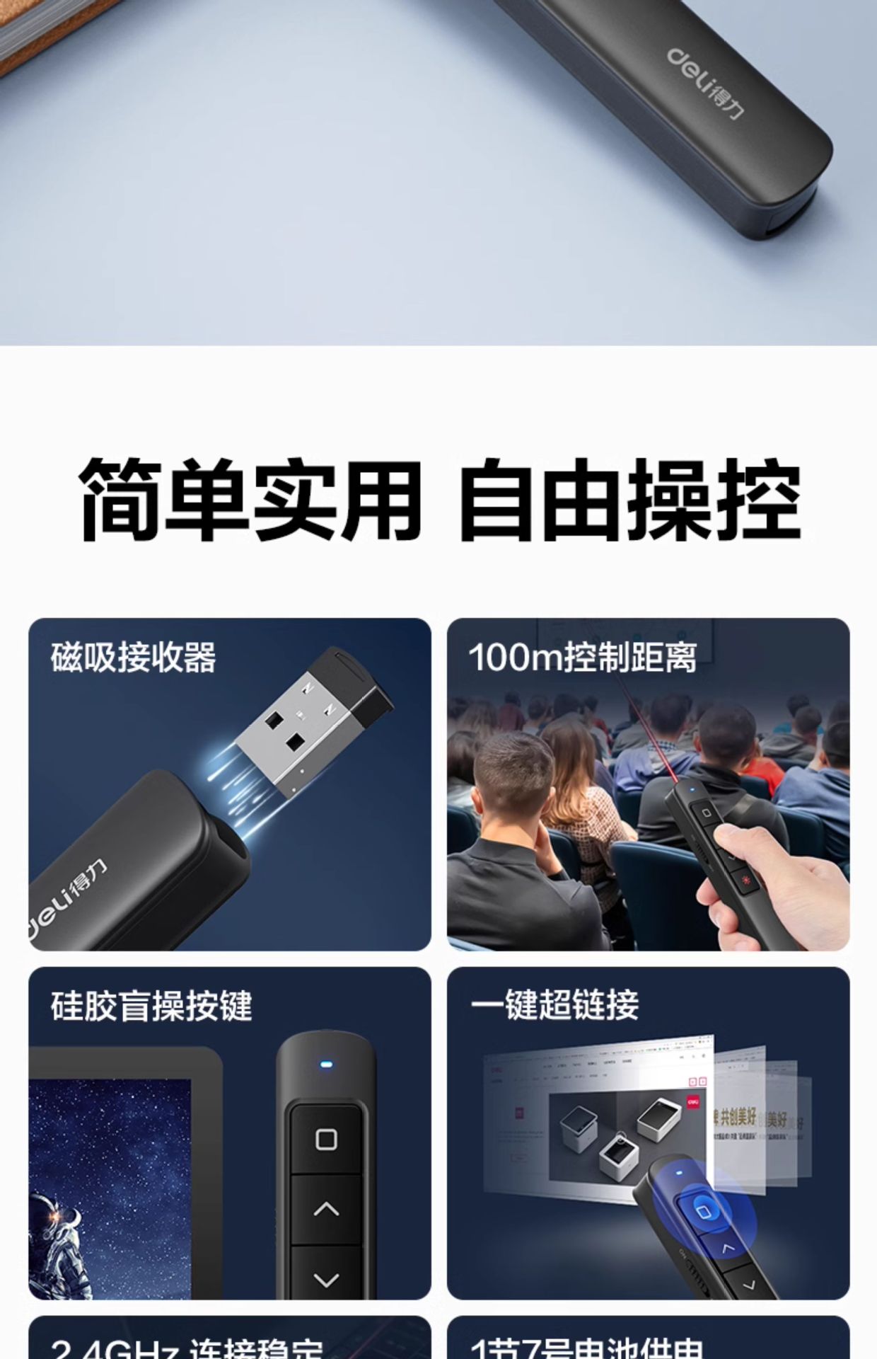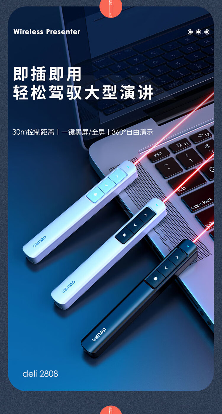 델리 플립펜 2808/2808S 교육용 슬라이드 발표용 50m 적색광 무선 다기능 플립펜 도매