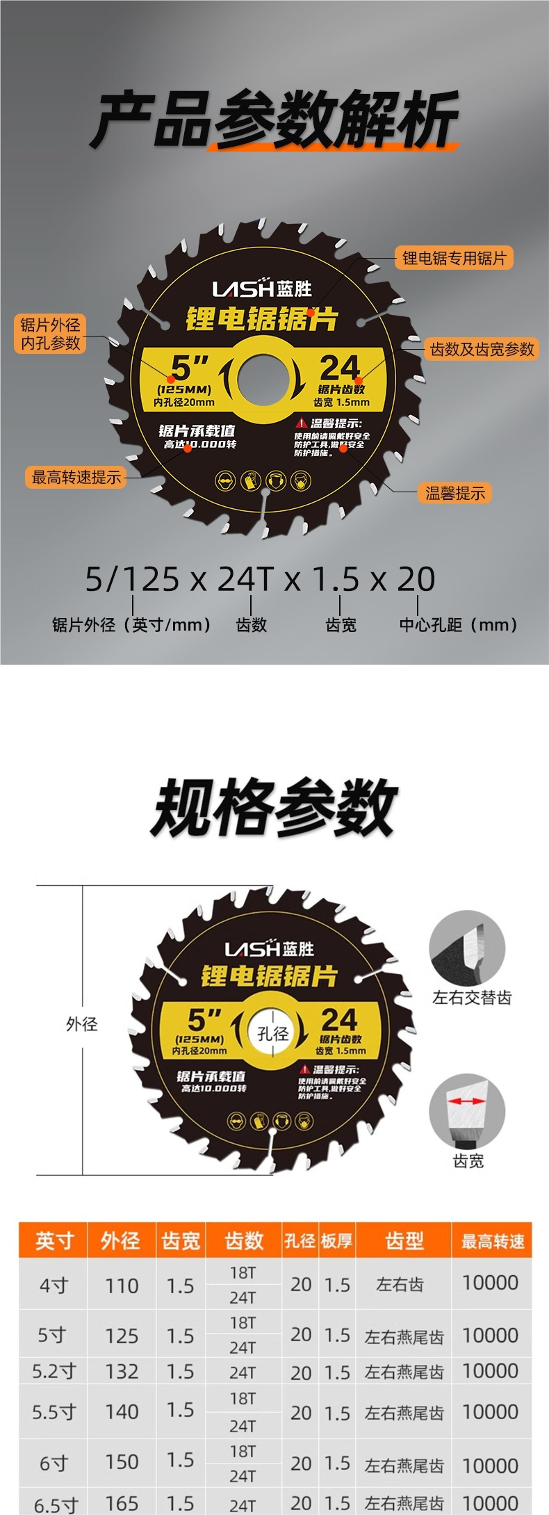 리튬 전기 톱 톱날 목공 4/5/5.5/6 인치 140mm 각도 그라인더 휴대용 전기 원형 톱 합금 절단 블레이드