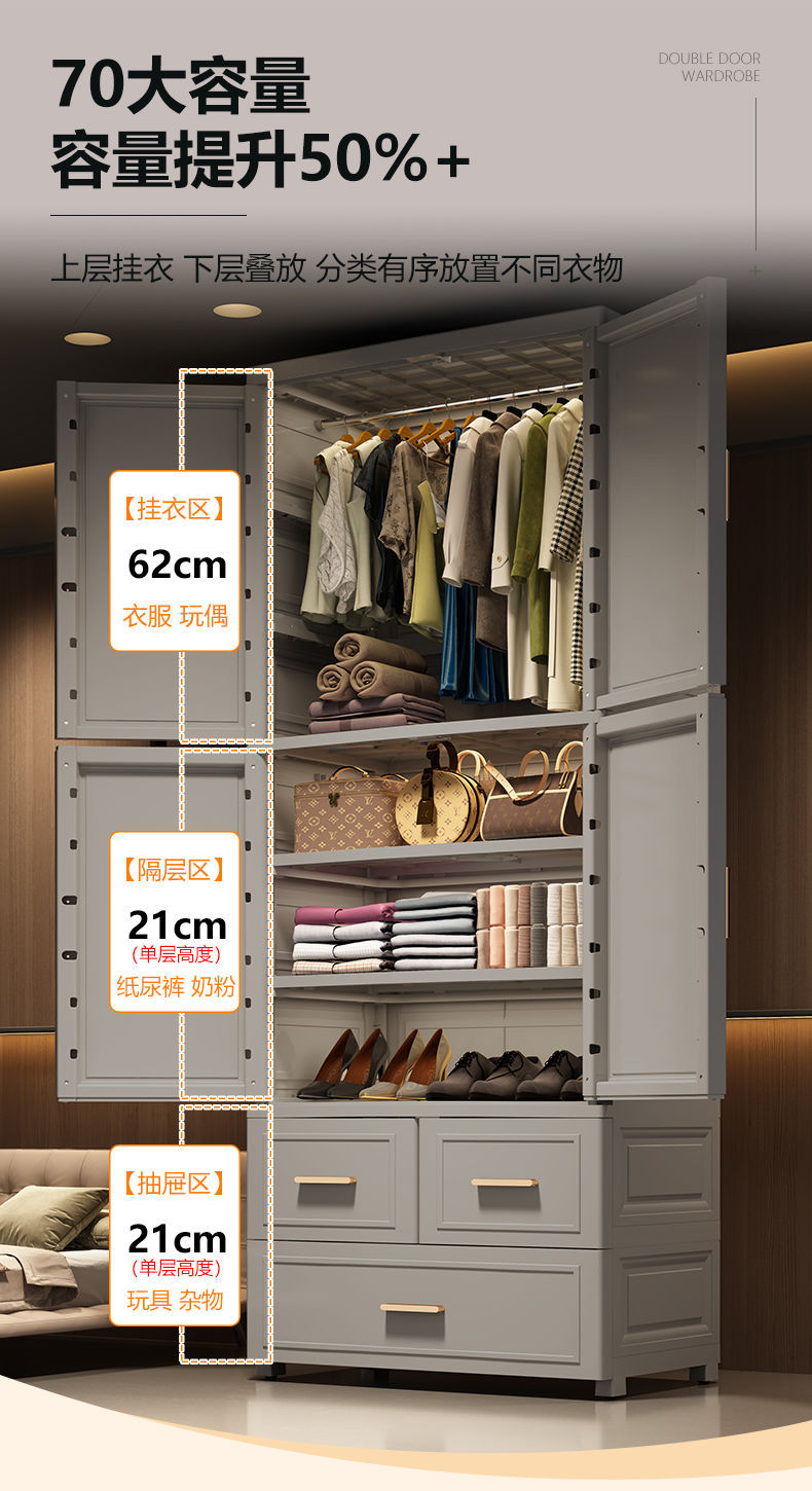 현대 간단한 가정용 대형 간단한 어린이 플라스틱 옷장 보관 캐비닛 의류 보관 캐비닛 포름 알데히드 프리