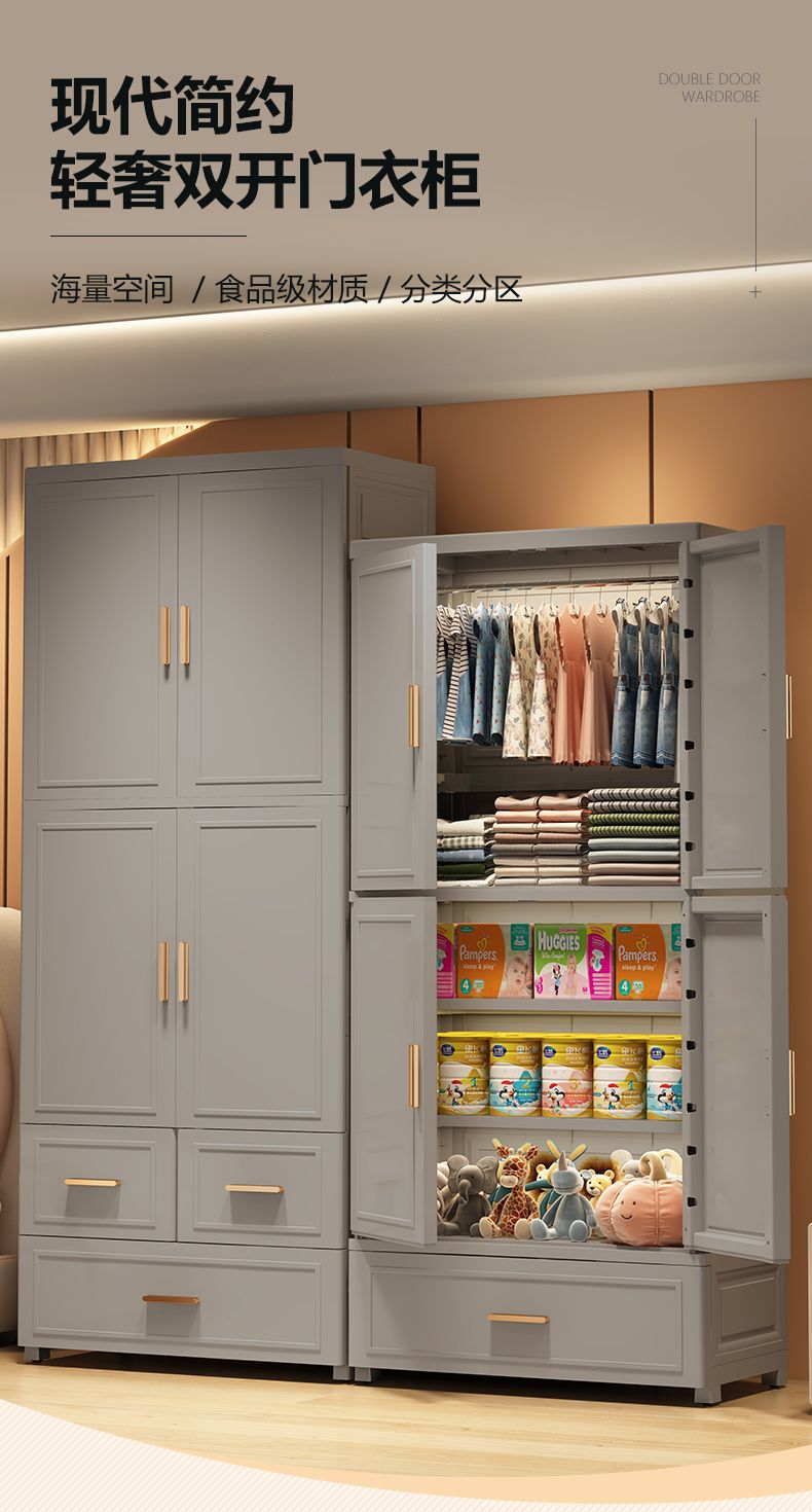 현대 간단한 가정용 대형 간단한 어린이 플라스틱 옷장 보관 캐비닛 의류 보관 캐비닛 포름 알데히드 프리스토어 가기