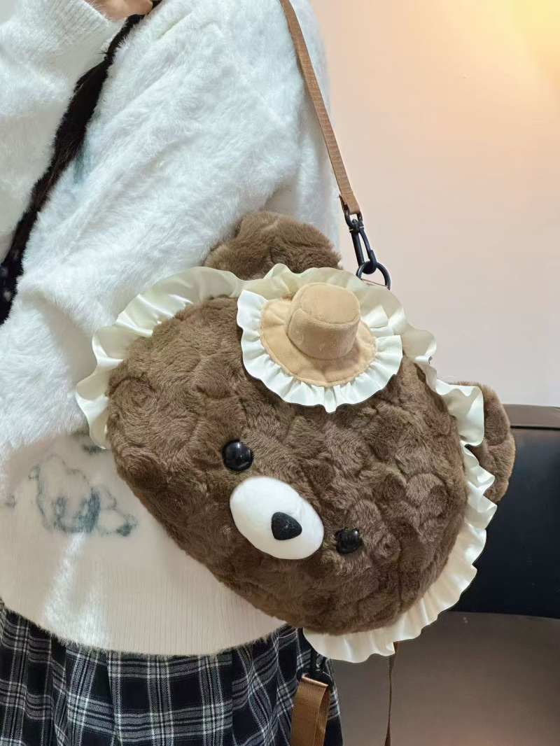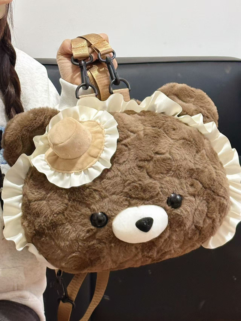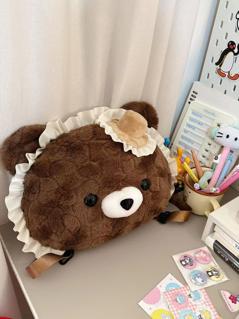 슈퍼 귀여운 일본 귀여운 만화 다크 브라운 사랑 곰 인형 봉제 배낭 서양식 소녀 통근 jk 배낭스토어 가기