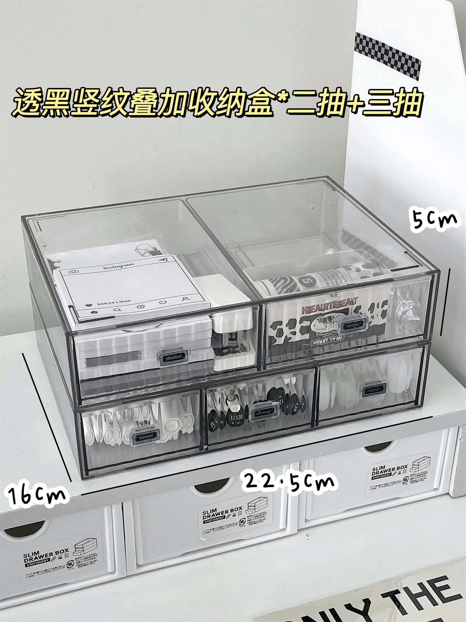 • 투명 검정색 세로 패턴 스택형 보관함 *서랍 2개 + 서랍 3개★