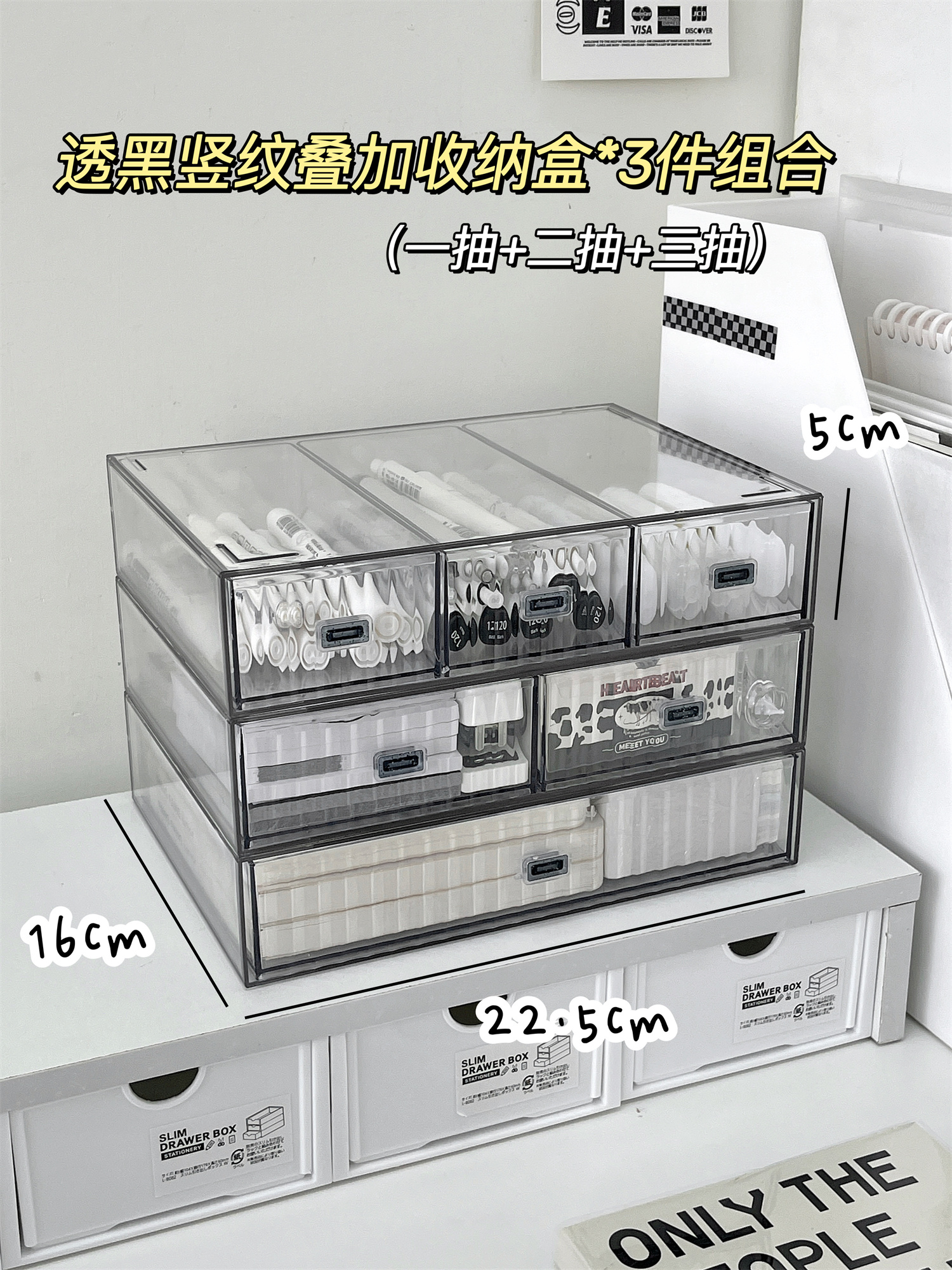 • 투명 검정색 세로 패턴 스택형 수납함*1개 드로 + 2개 드로★