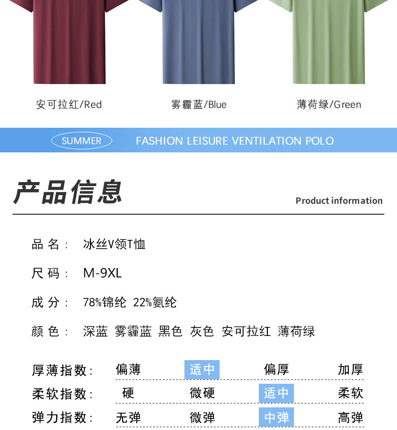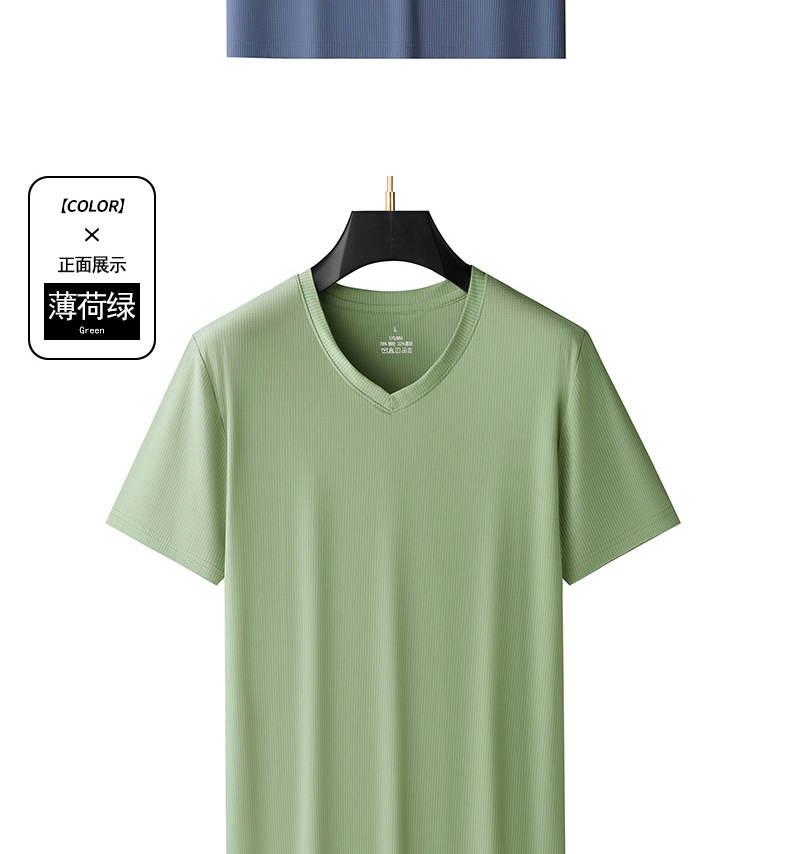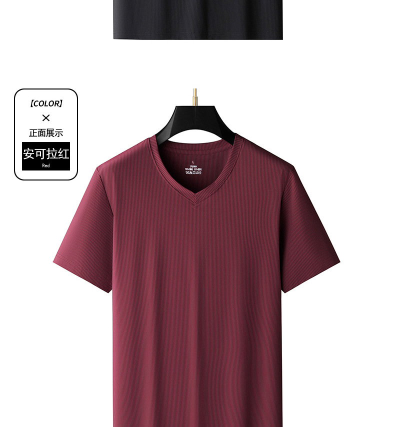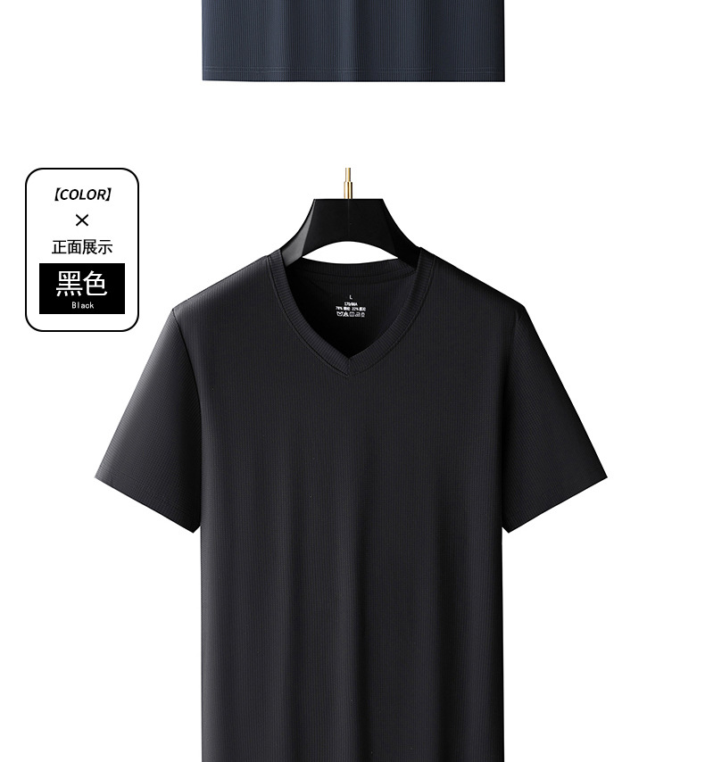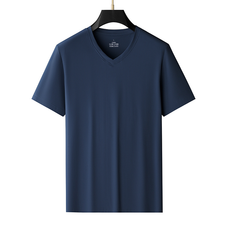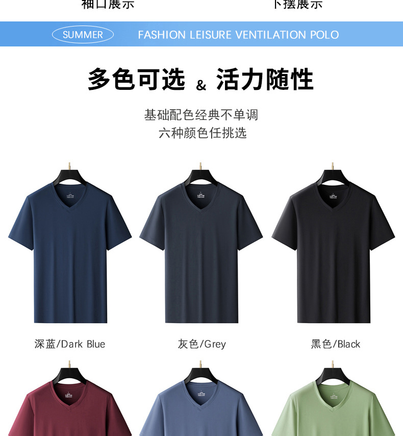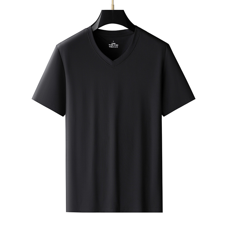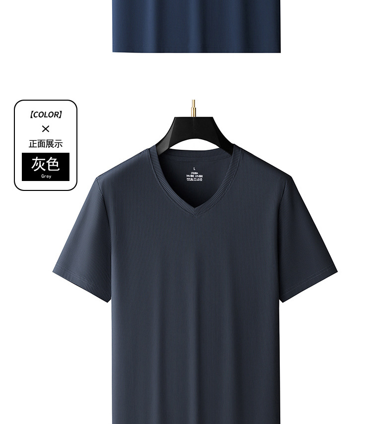 남자 반팔 티셔츠 여름 새로운 아이스 실크 V 넥 캐주얼 쿨 티셔츠 솔리드 컬러 탑 얇은 플러스 사이즈 느슨한스토어 가기