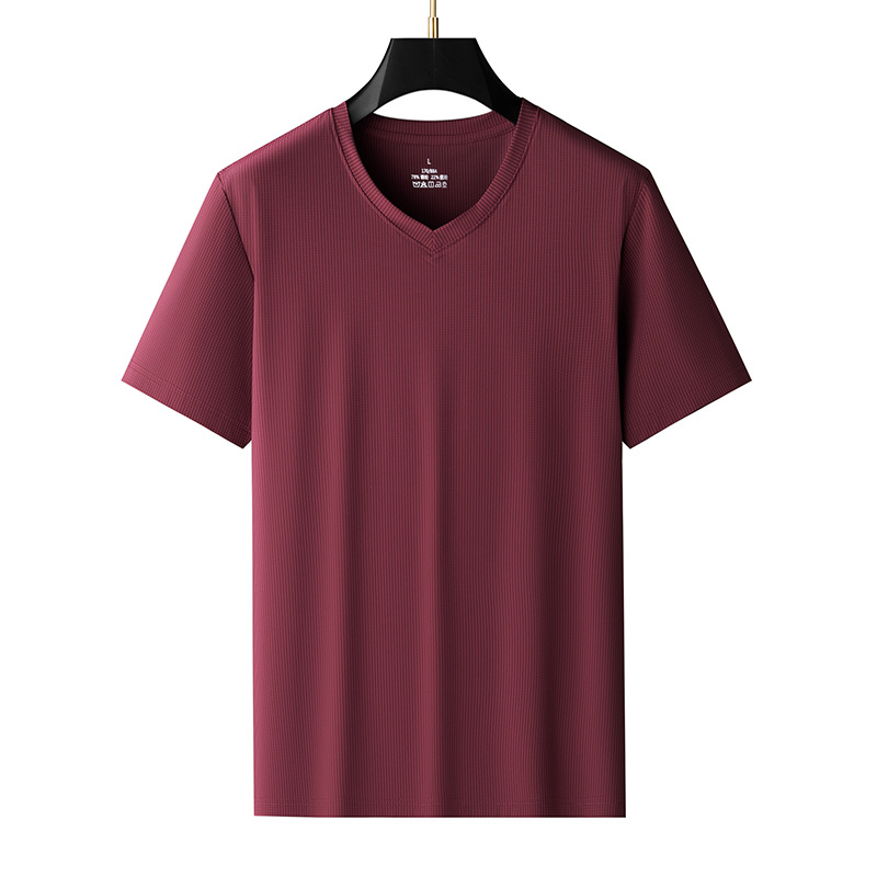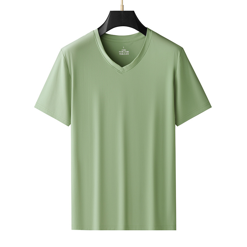 남자 반팔 티셔츠 여름 새로운 아이스 실크 V 넥 캐주얼 쿨 티셔츠 솔리드 컬러 탑 얇은 플러스 사이즈 느슨한