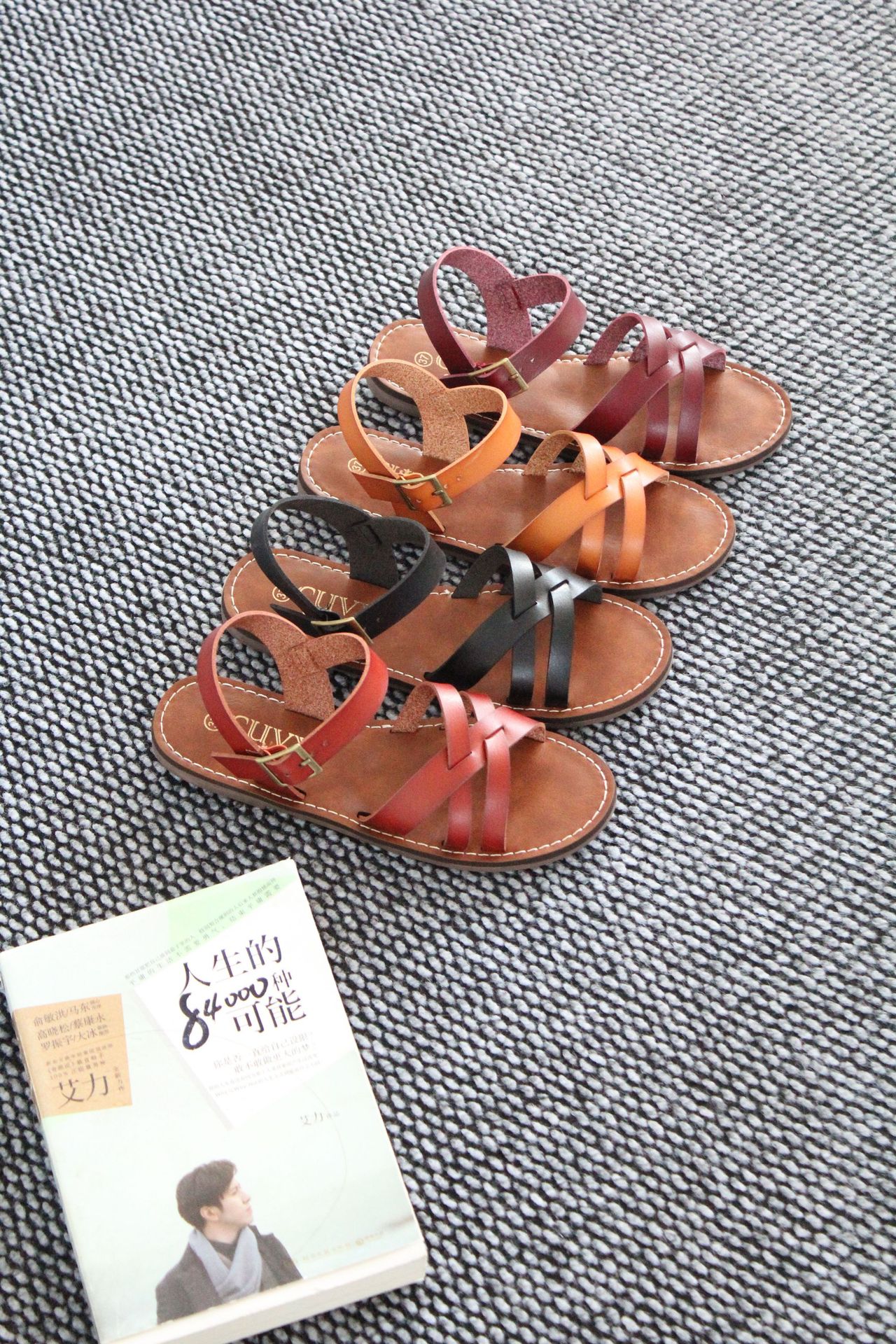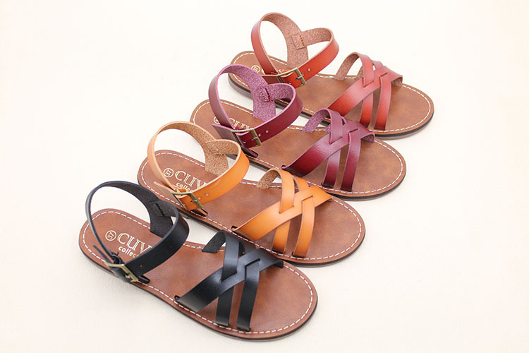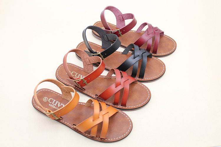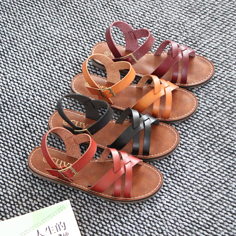 플랫 크로스 스트랩 로마 샌들 여성 여름 공예 신발 버클 스트랩 비치 신발 여성용 샌들