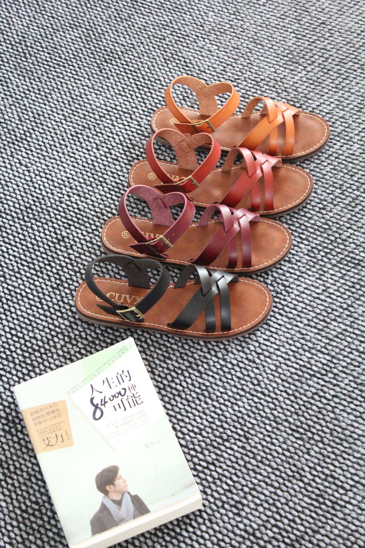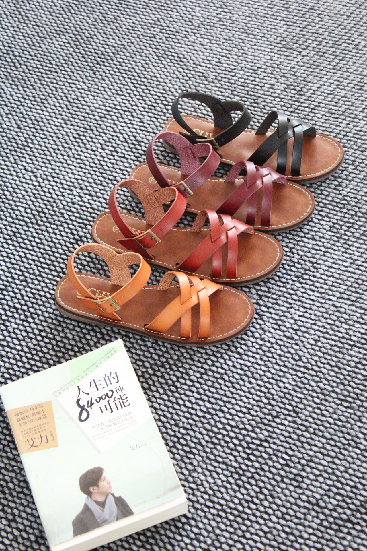 플랫 크로스 스트랩 로마 샌들 여성 여름 공예 신발 버클 스트랩 비치 신발 여성용 샌들스토어 가기