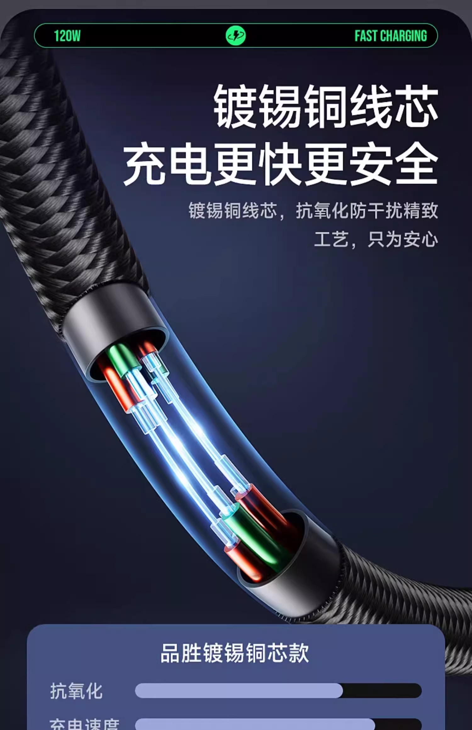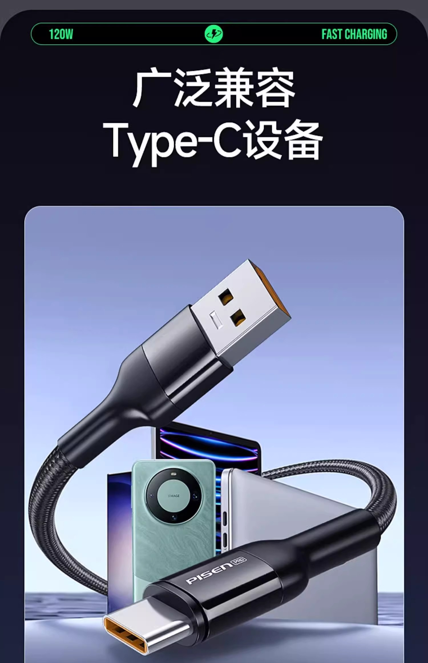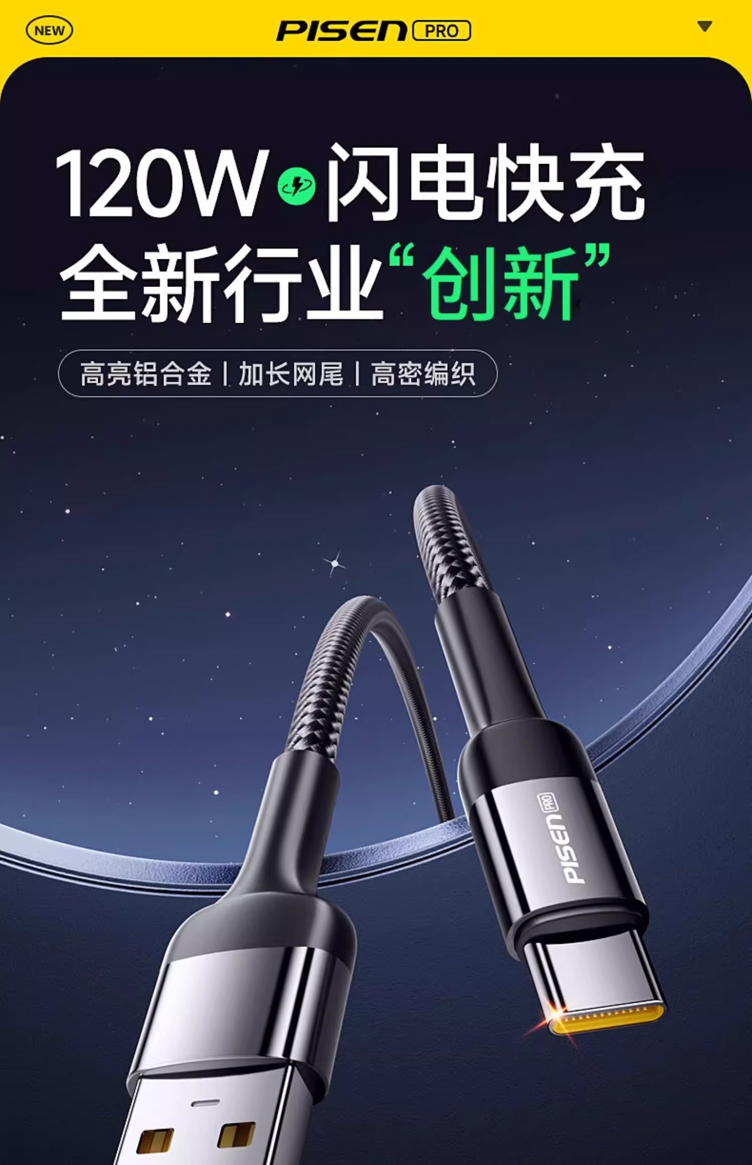 Pinsheng usb to typec 데이터 라인 120W 초고속 충전 100W 충전 라인 6a 화웨이 Mate70스토어 가기