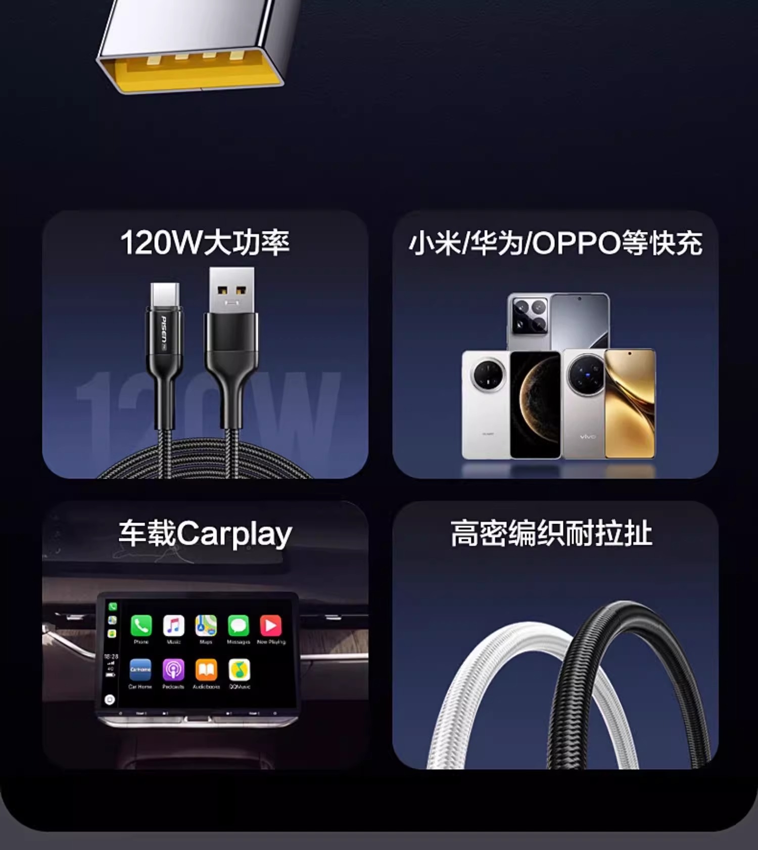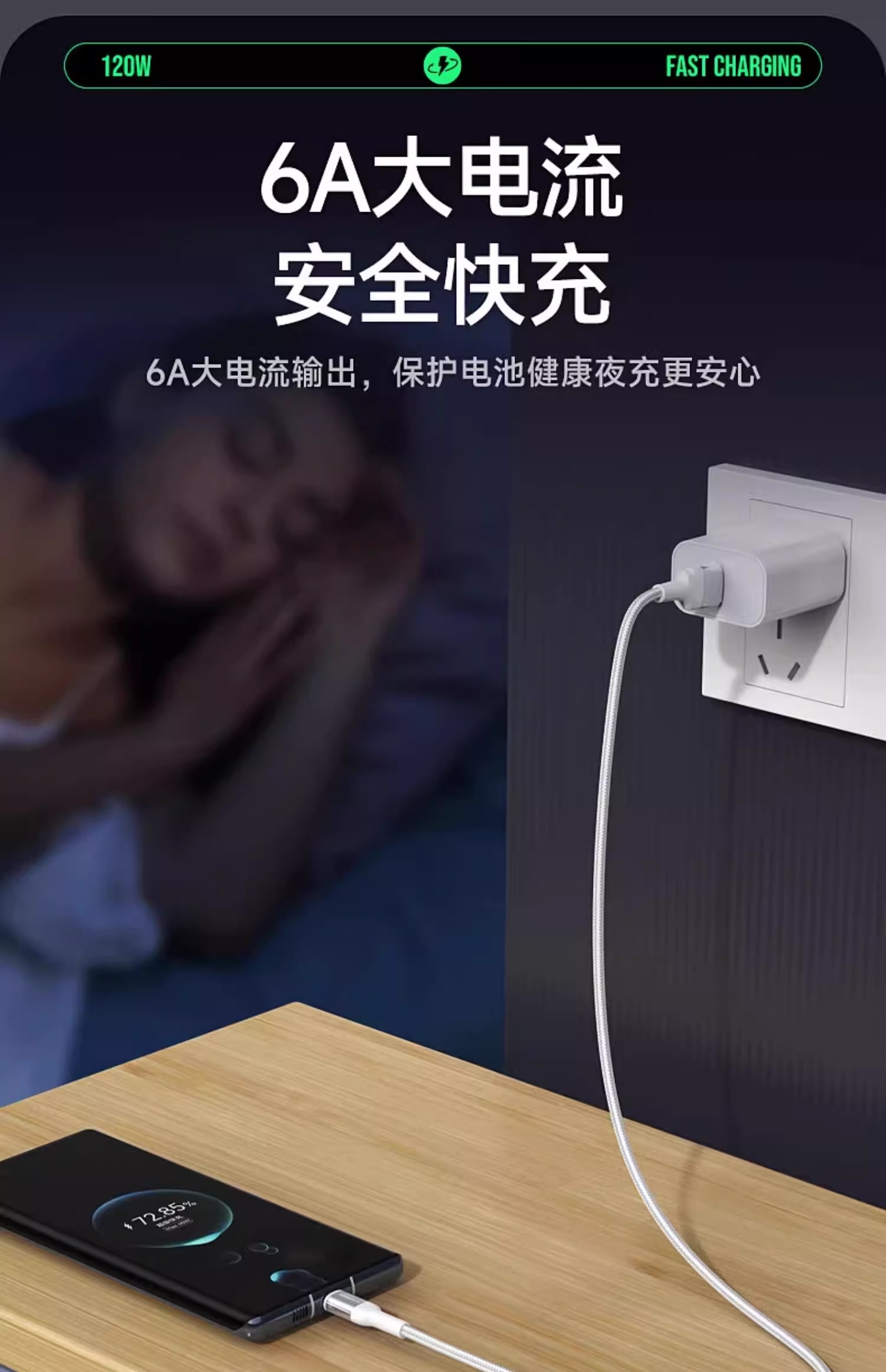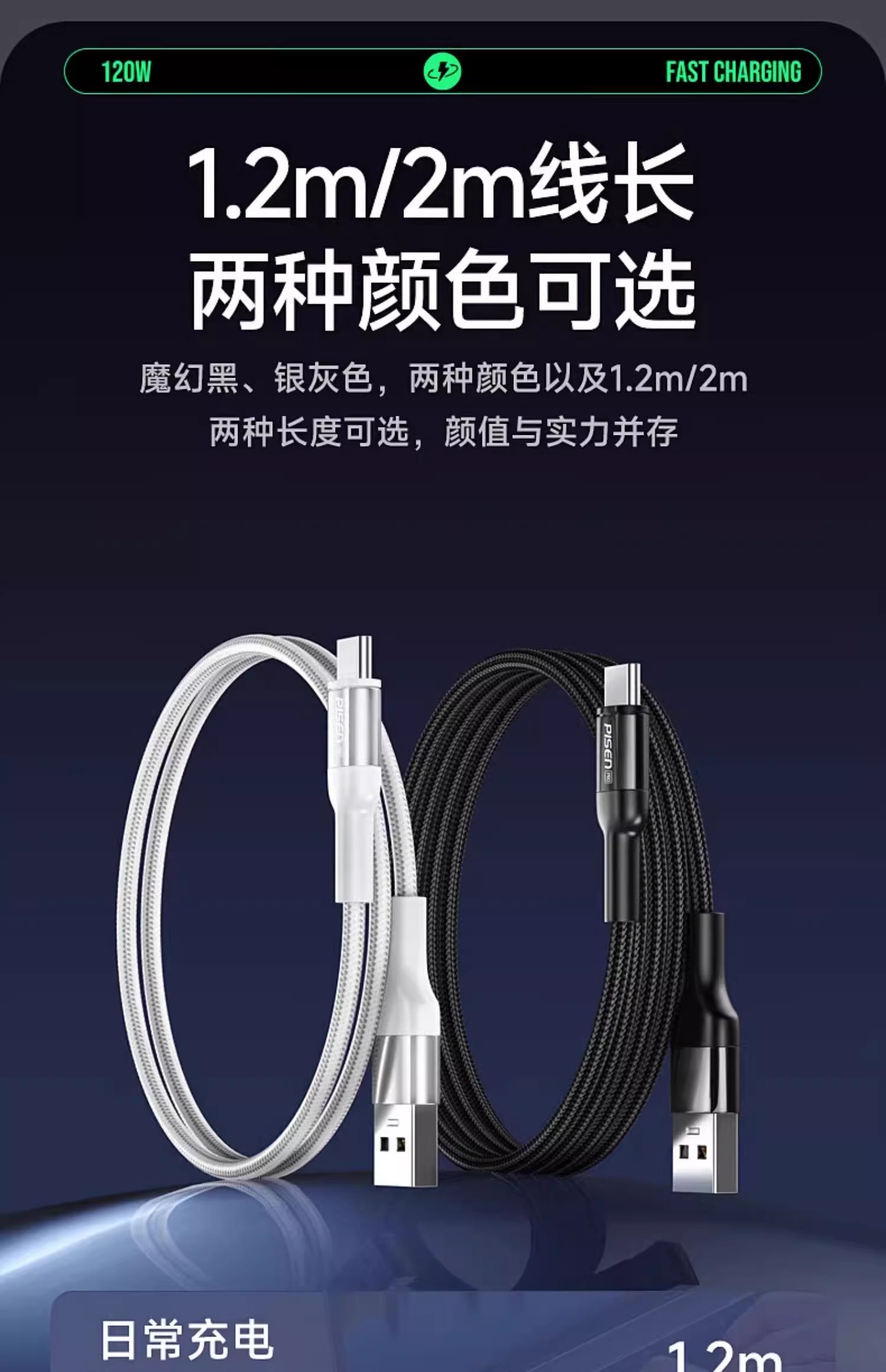 • 실버 그레이 1.2m [120W 초고속 충전] Huawei/Honor/Xiaomi/OPPO/ViVO/OnePlus 휴대폰에 적합