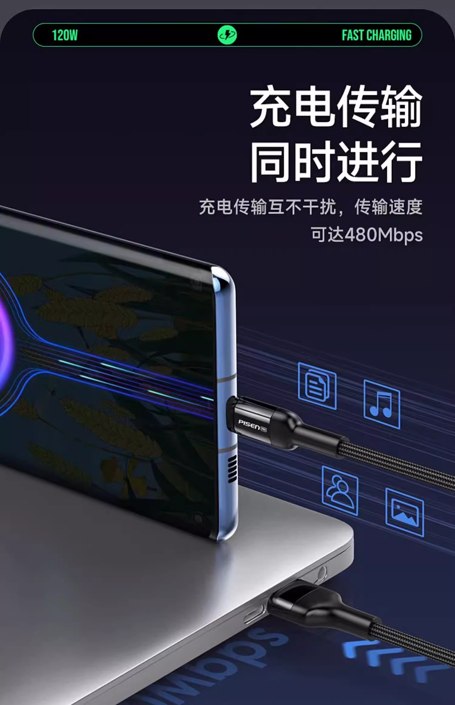 Pinsheng usb to typec 데이터 라인 120W 초고속 충전 100W 충전 라인 6a 화웨이 Mate70
