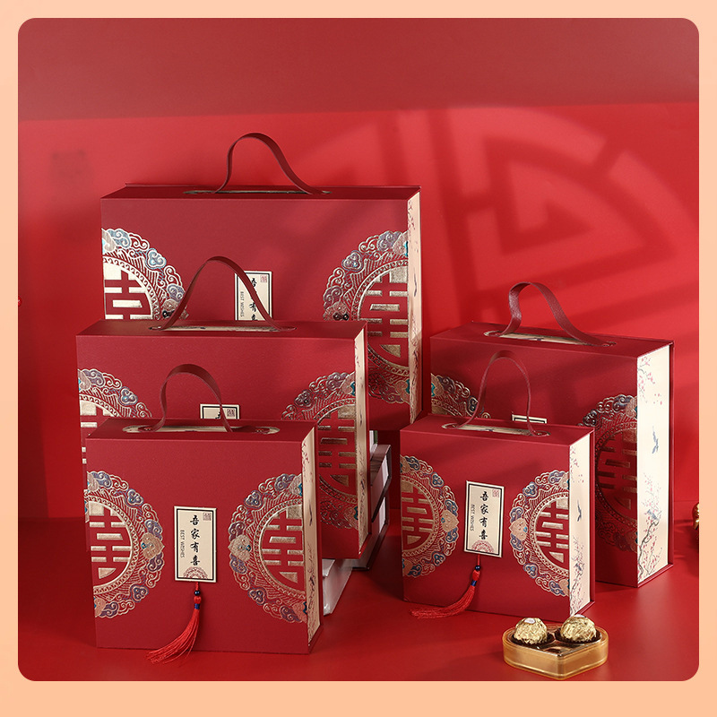 ✅중국 웨딩 사탕 상자 Guofeng 마그네틱 플립 커버 선물 상자 동반 선물 상자 브론징 술 휴대용스토어 가기